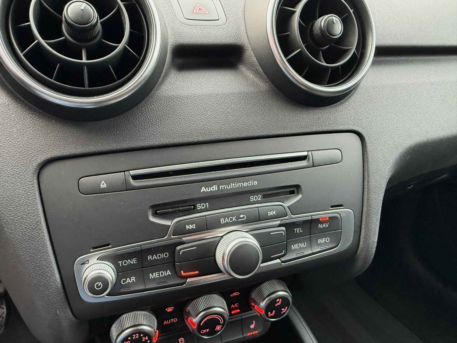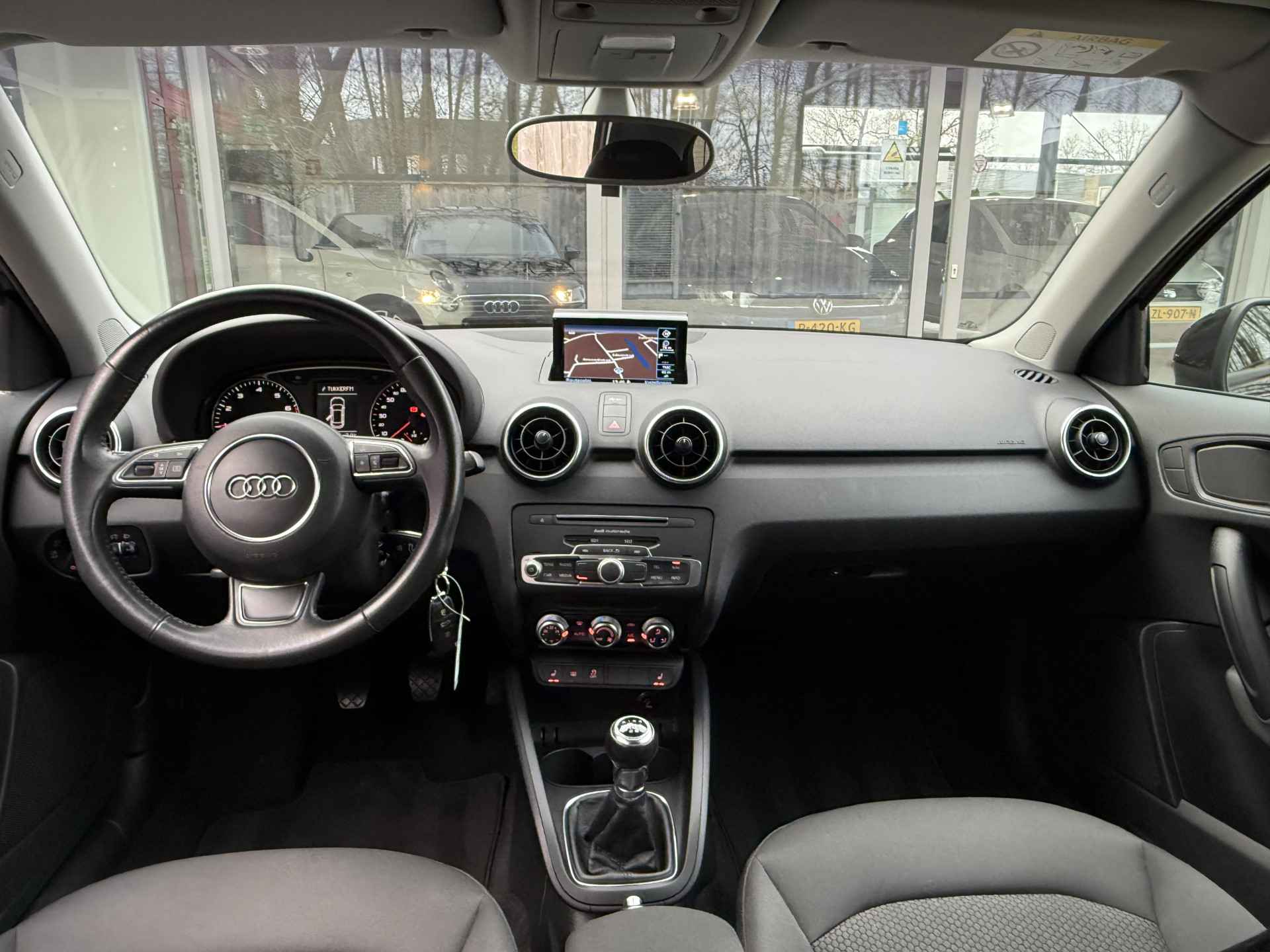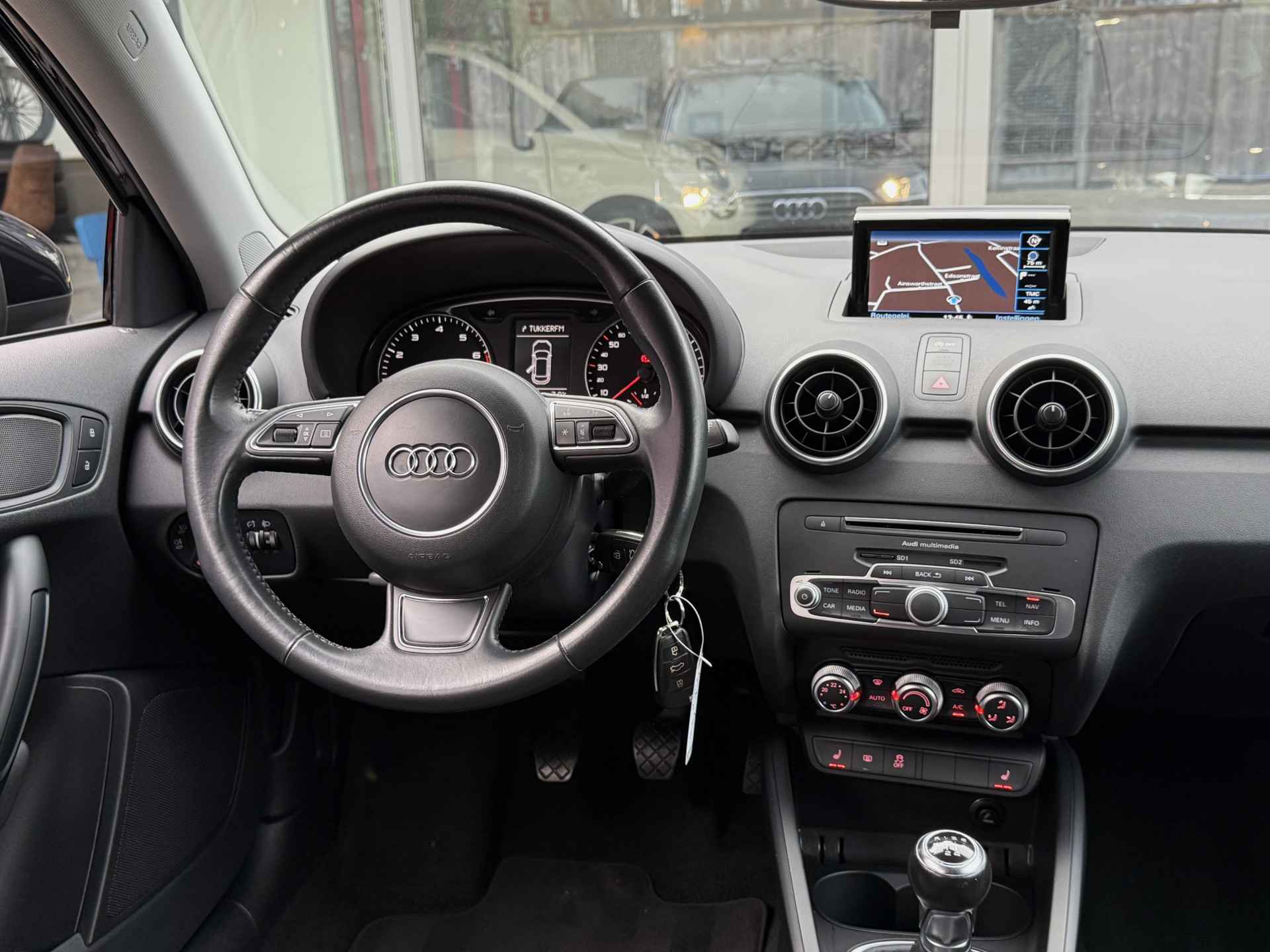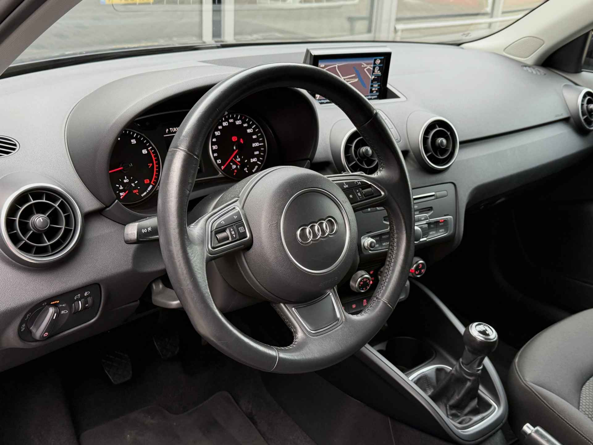 In deze A1 Sportback vindt u schakelaars op het stuur om het audiosysteem te bedienen en het full map navigatiesysteem. Hoeveel ruimte u nog heeft bij het insteken? De parkeersensoren laten het weten! Da's gemakkelijk! En natuurlijk is er ook gedacht aan airconditioning.