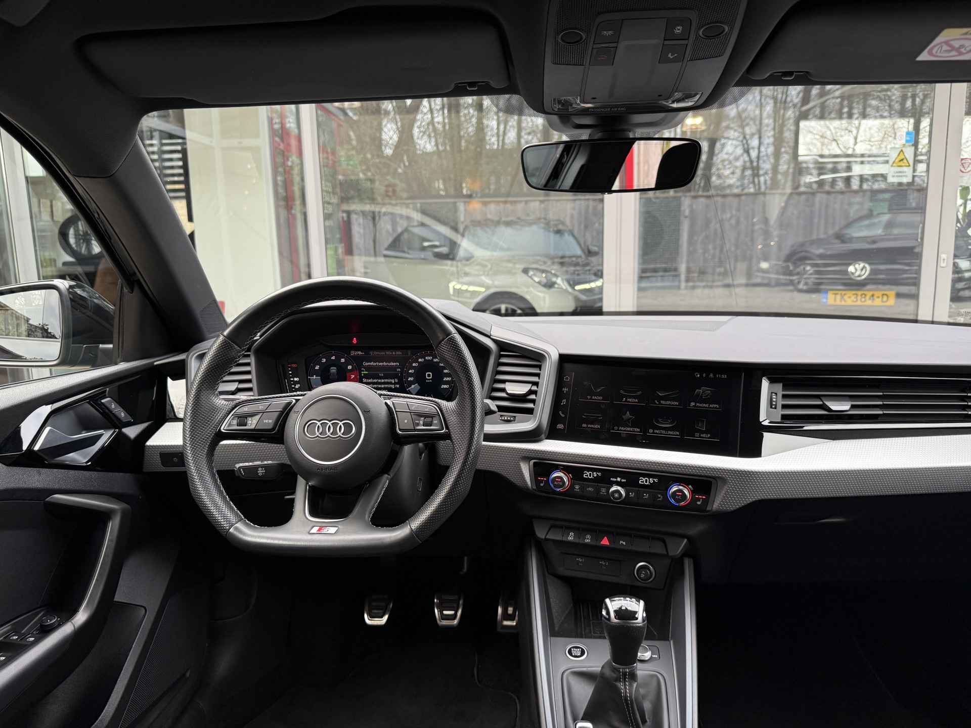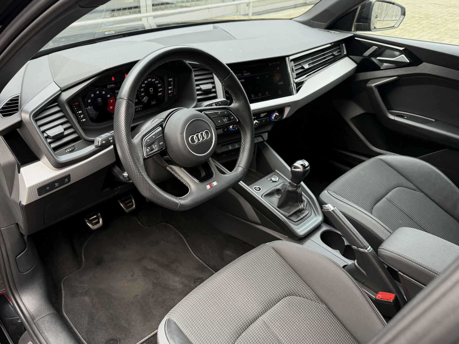 Schitterende Audi A1 met af fabriek S-Line in- en exterieur pakket en o.a. voorzien van: Automatische airconditioning, cruise control, apple/android carplay, 18 ich velgen, privacy glas achter, elektrisch inklapbare buitenspiegels, parkeersensoren voor en achter, sportstoelen leder/stoffen bekleding, stoelverwarming, digitaal dashbord, enz.. enz..