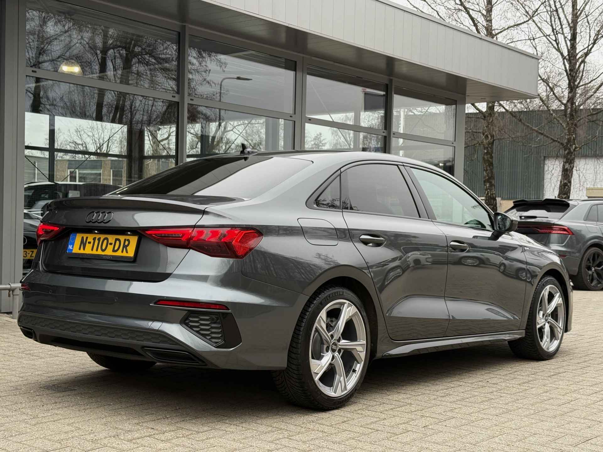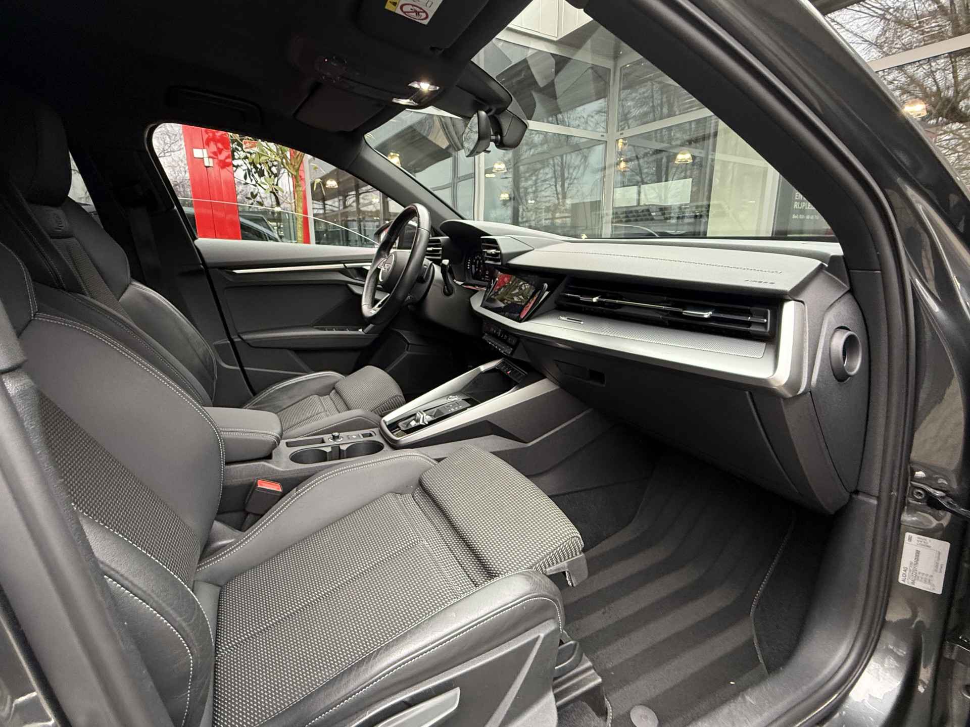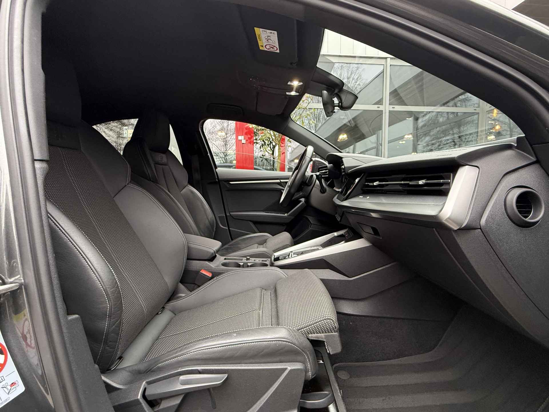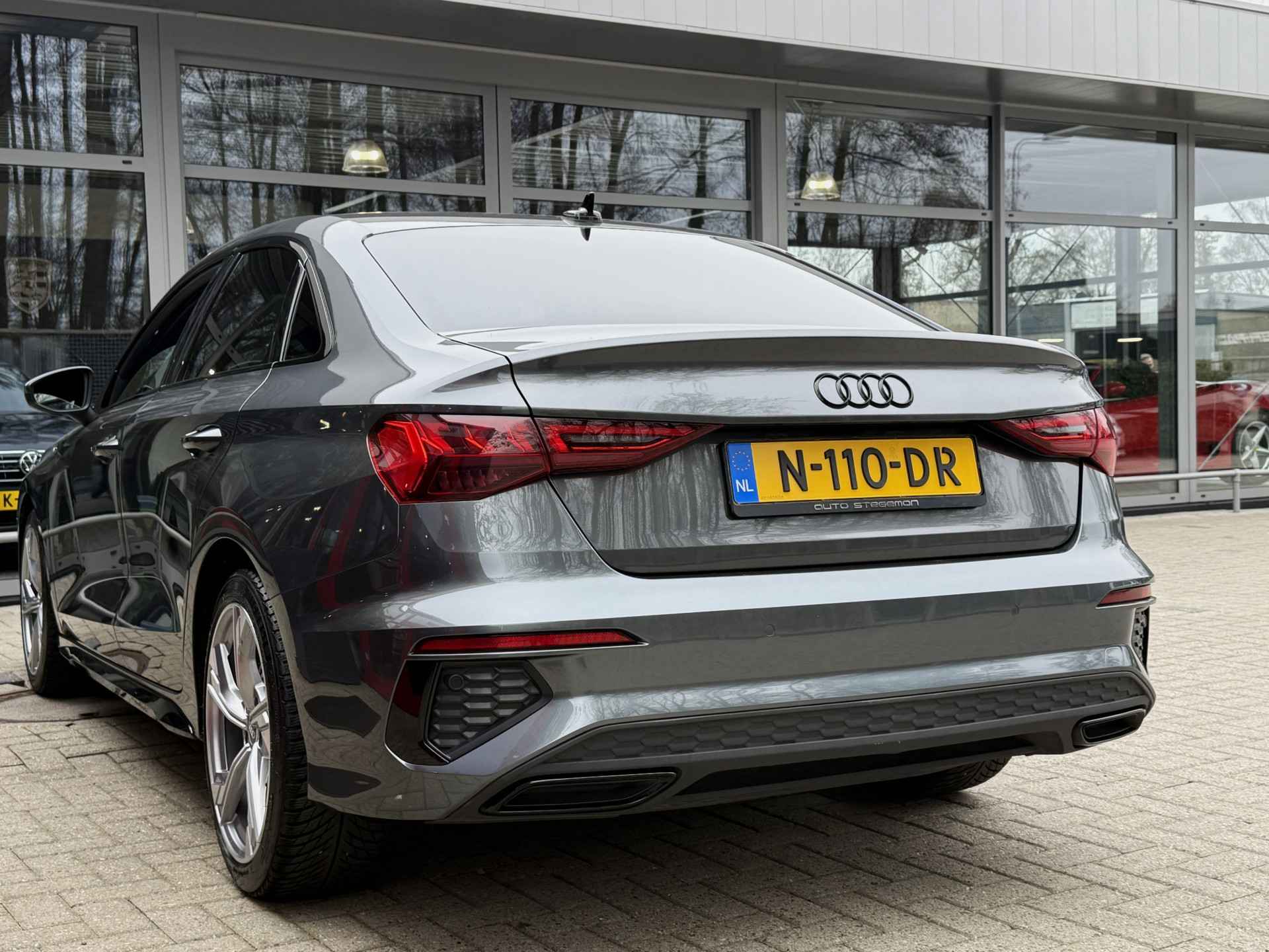 Schitterende Audi A3 Limousine met af fabriek S-Line in- en exterieur pakket!! o.a. voorzien van: Automatische airconditioning, cruise control, full map navigatie, carplay, stoelverwarming, virtual dashbord, sportstoelen leder/stof, daytona grijs metallic, black optiek pakket (exterieur delen in zwart), 18 inch velgen, privacy glas, enz.. enz..