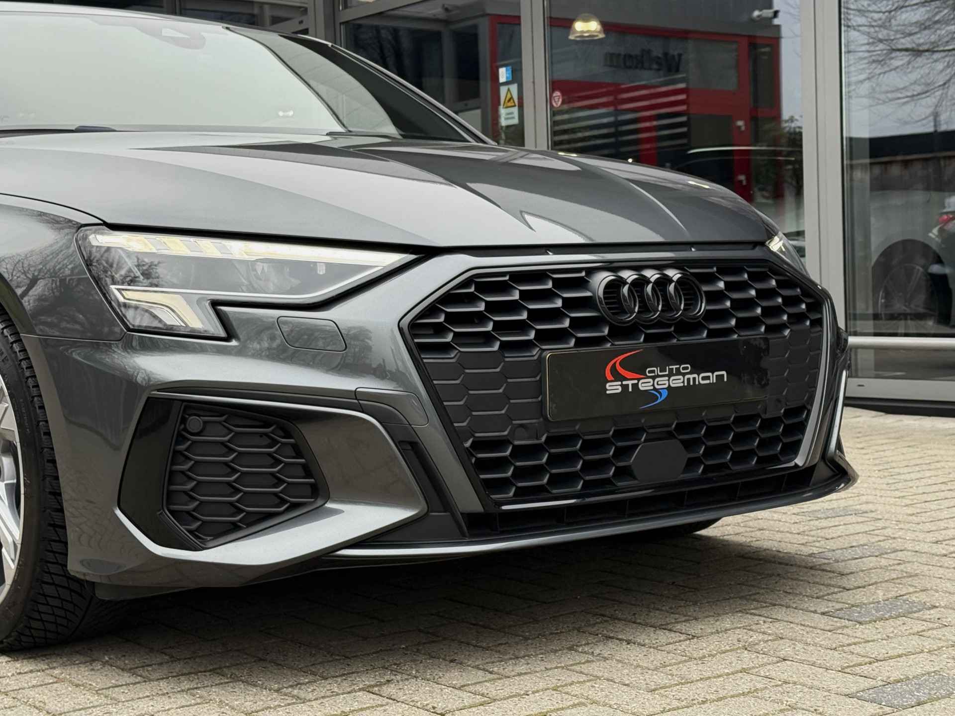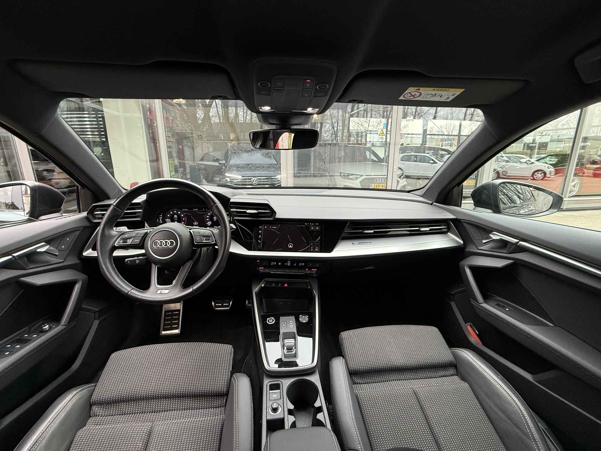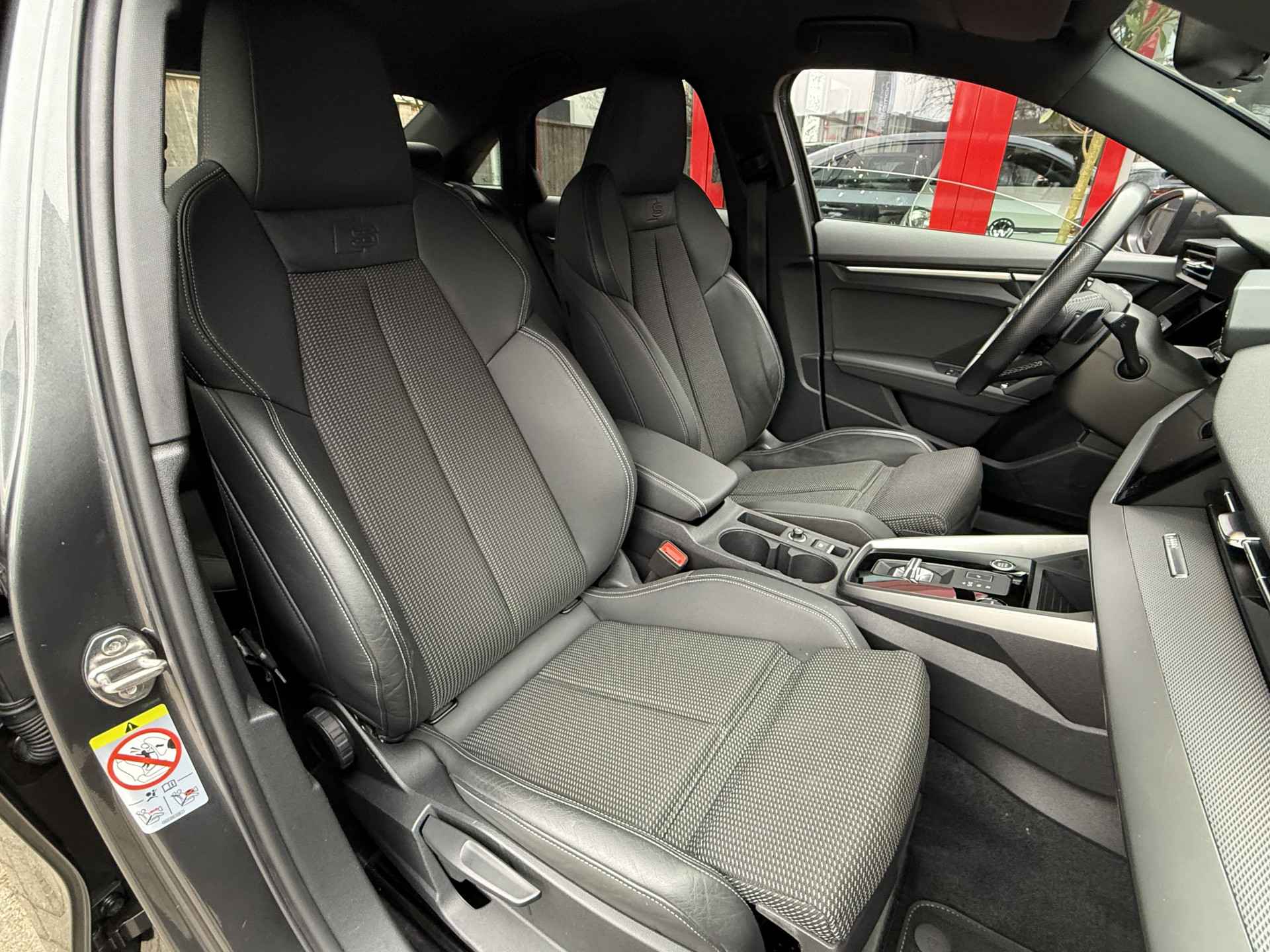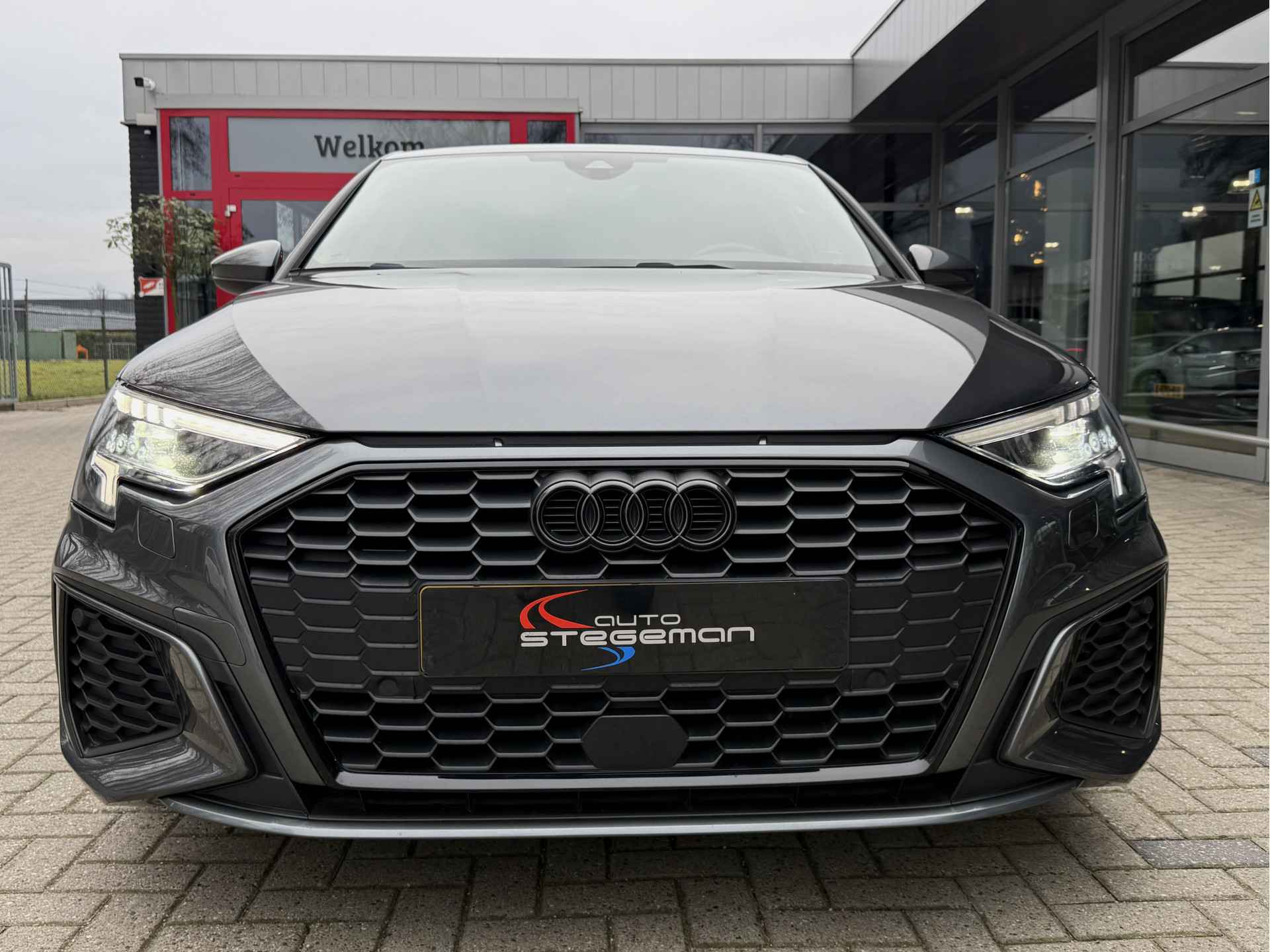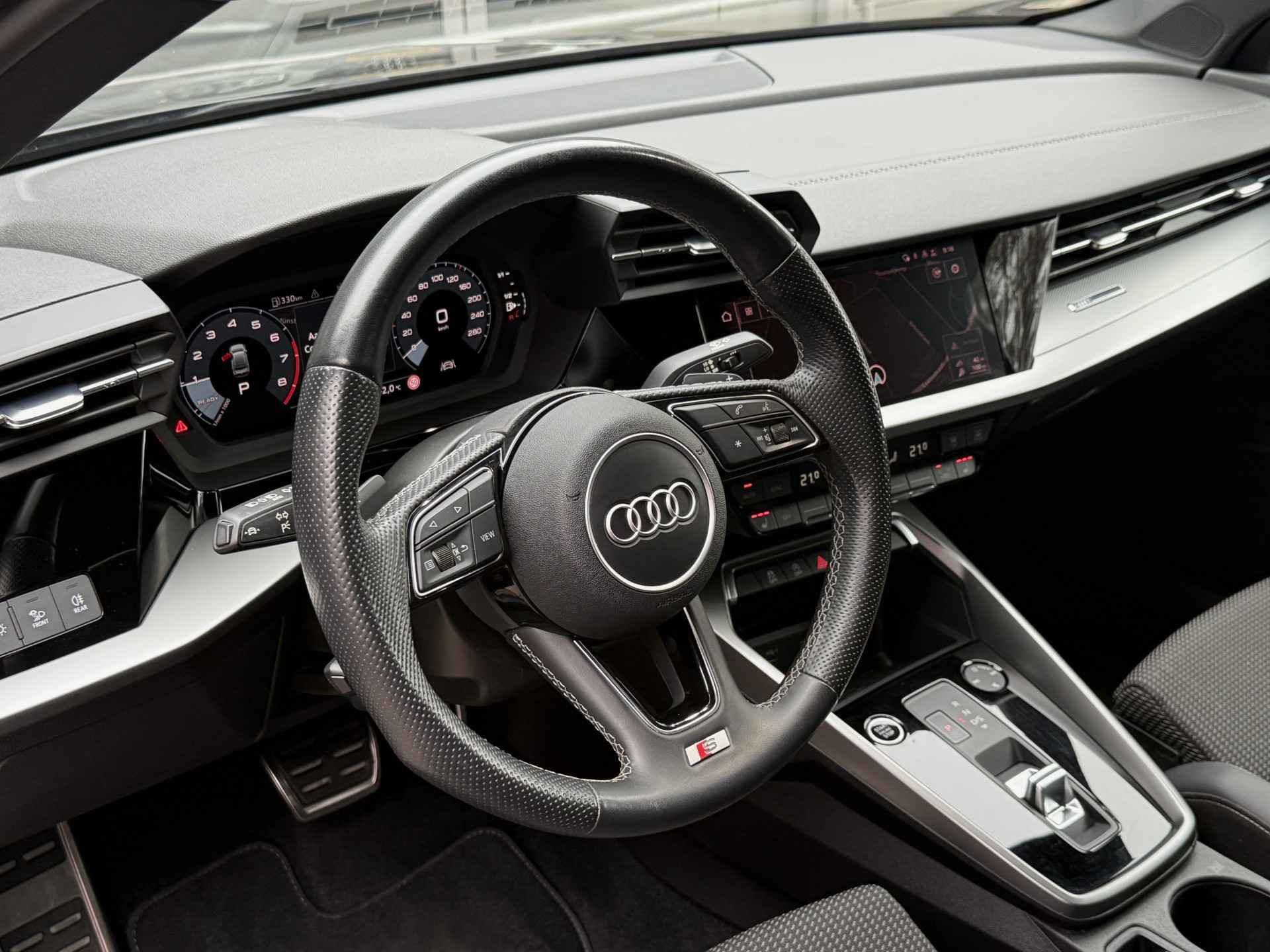 Schitterende Audi A3 Limousine met af fabriek S-Line in- en exterieur pakket!! o.a. voorzien van: Automatische airconditioning, cruise control, full map navigatie, carplay, stoelverwarming, virtual dashbord, sportstoelen leder/stof, daytona grijs metallic, black optiek pakket (exterieur delen in zwart), 18 inch velgen, privacy glas, enz.. enz..