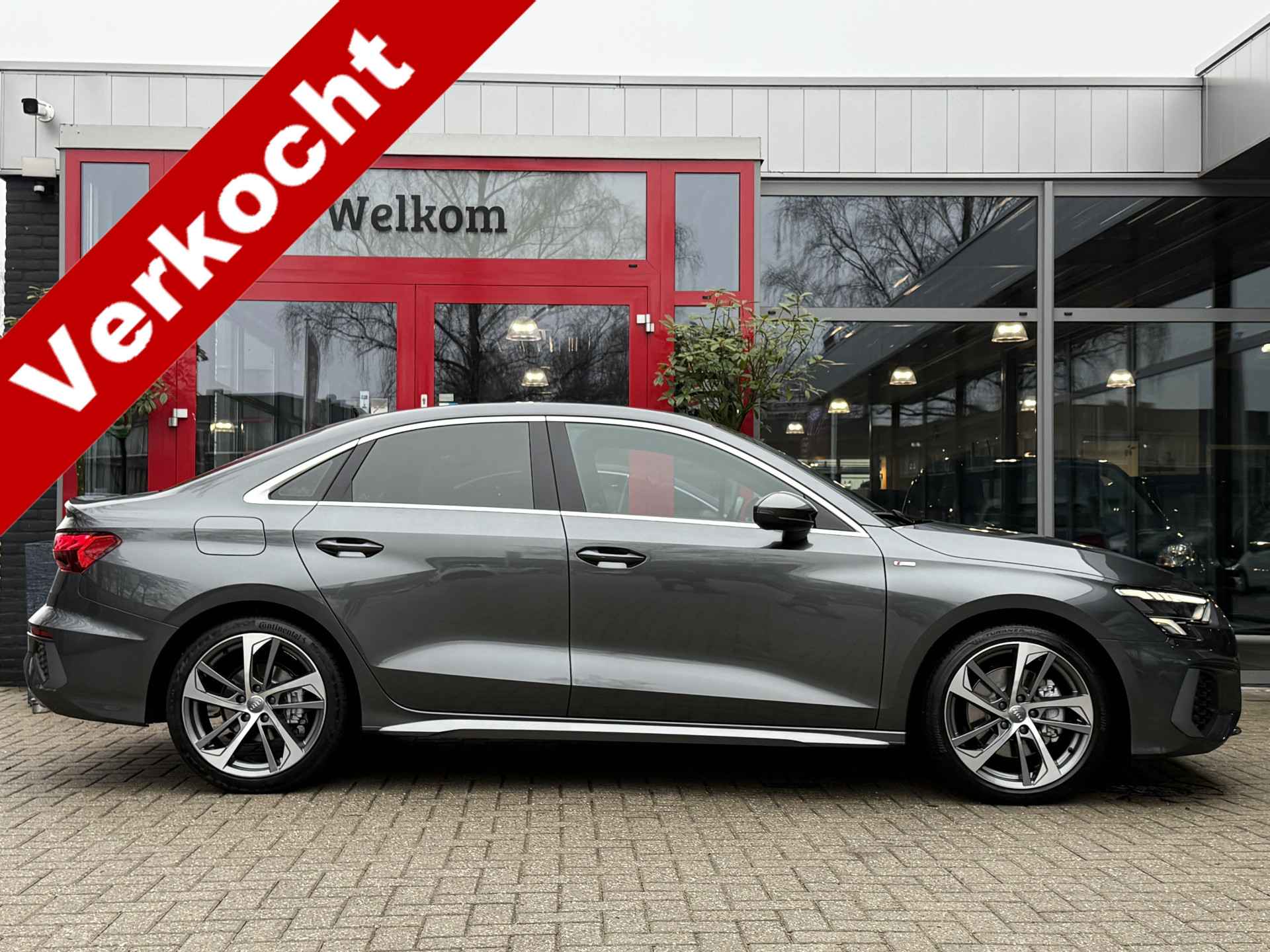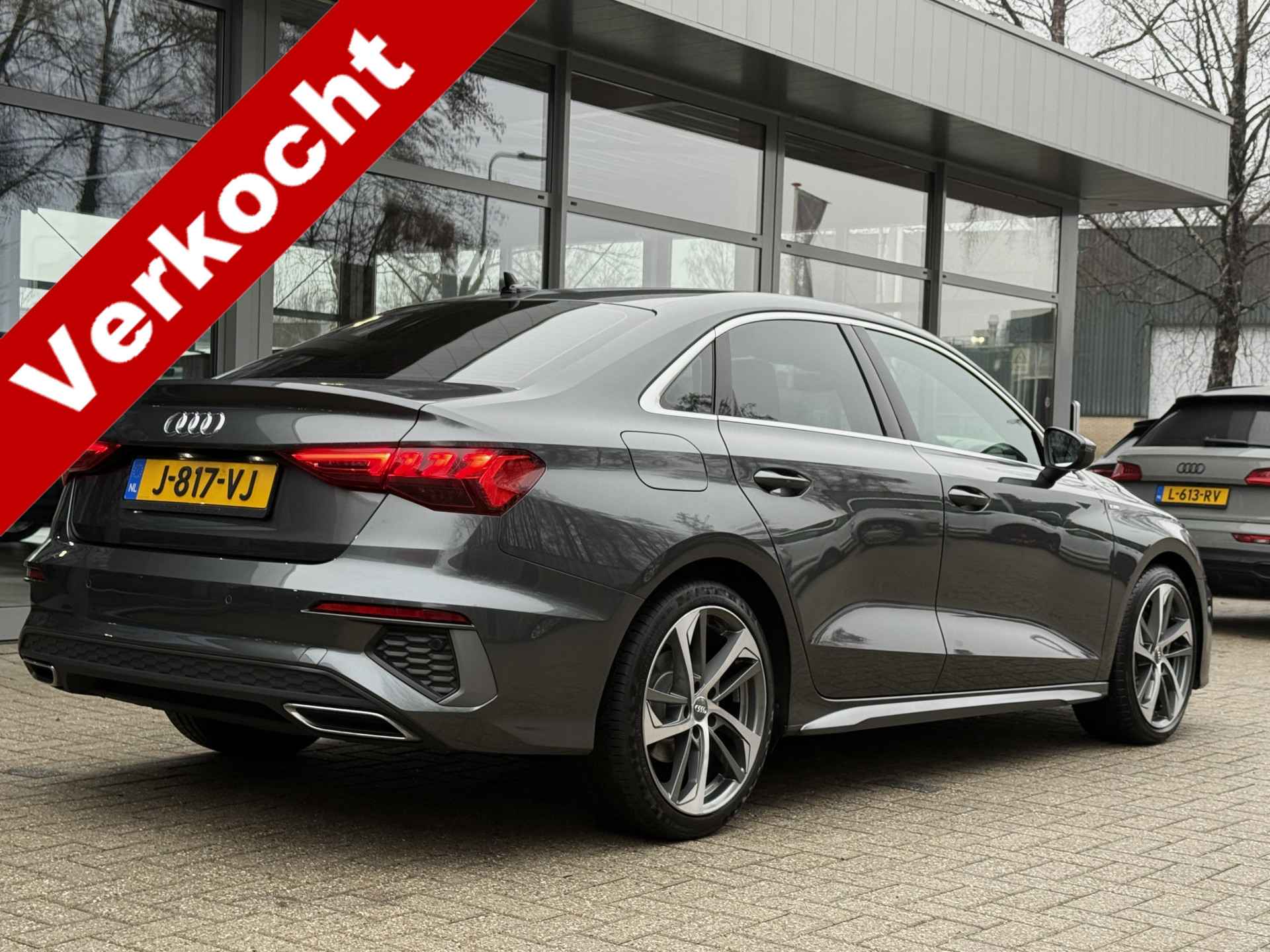 Schitterende, dealer onderhouden Audi A3 Limousine met 150 pk tfsi motor en o.a. voorzien van S-Line in- en exterieur, interieur verlichtingspakket in kleuren instelbaar, 18 inch velgen, led voor- en achterlichten, full map navigatie, carplay, leder/stoffen bekleding, daytona grijs metallic, bluetooth carkitt en audiostreaming, enz.. enz..