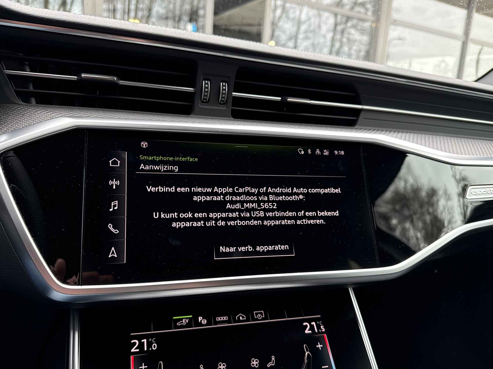 Schitterende, dealer onderhouden Audi A6 55 tfsi-e quattro competition met af fabriek S-LIne in- en exterieur pakket, sportstoelen met rood stiksel (ook in de gordels), stoel- en stuurwielverwarming, black optiek pakket, 21 inch velgen, carbon interieur afwerking, interieur verlichtingspakket (in kleuren instelbaar), matrix animatie led verlichting voor en achter, keyless go en entree, virtual dashbord, privacy glas, adaptieve cruise control, carplay, full map navigatie, 360 camera, enz.. enz..