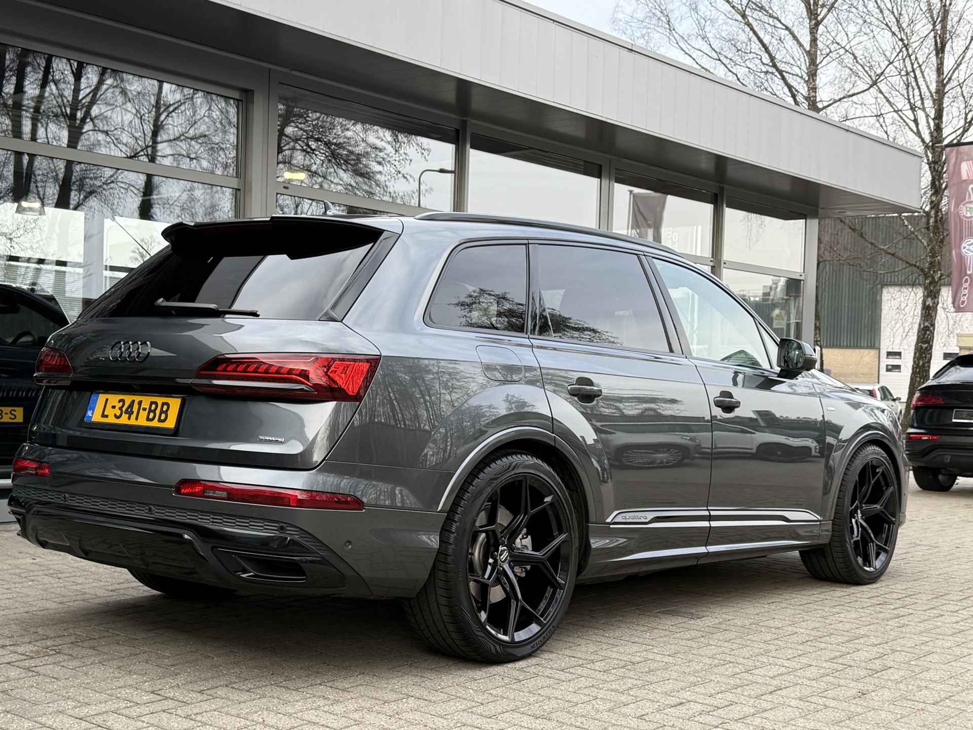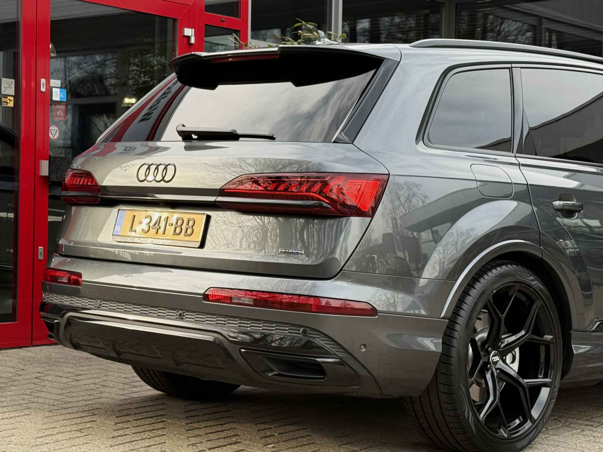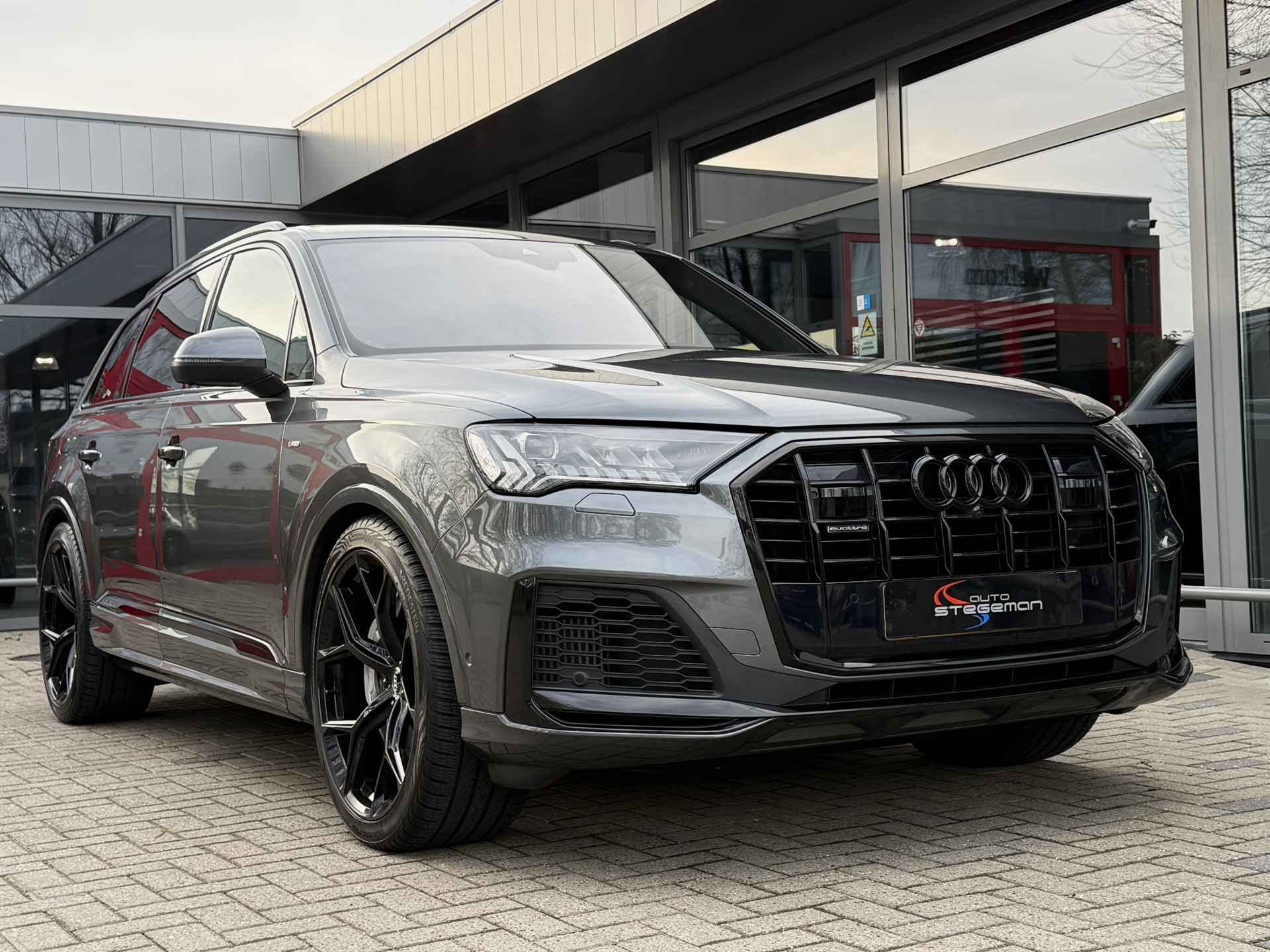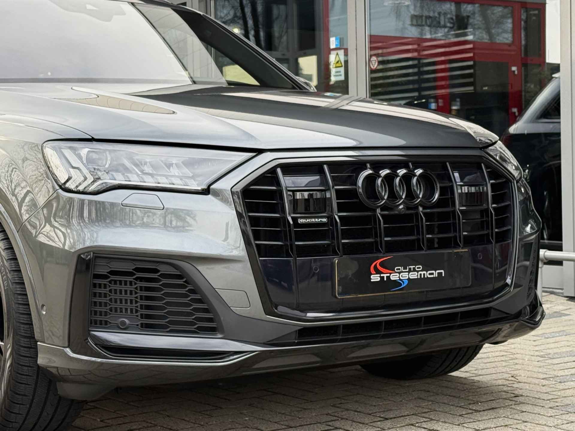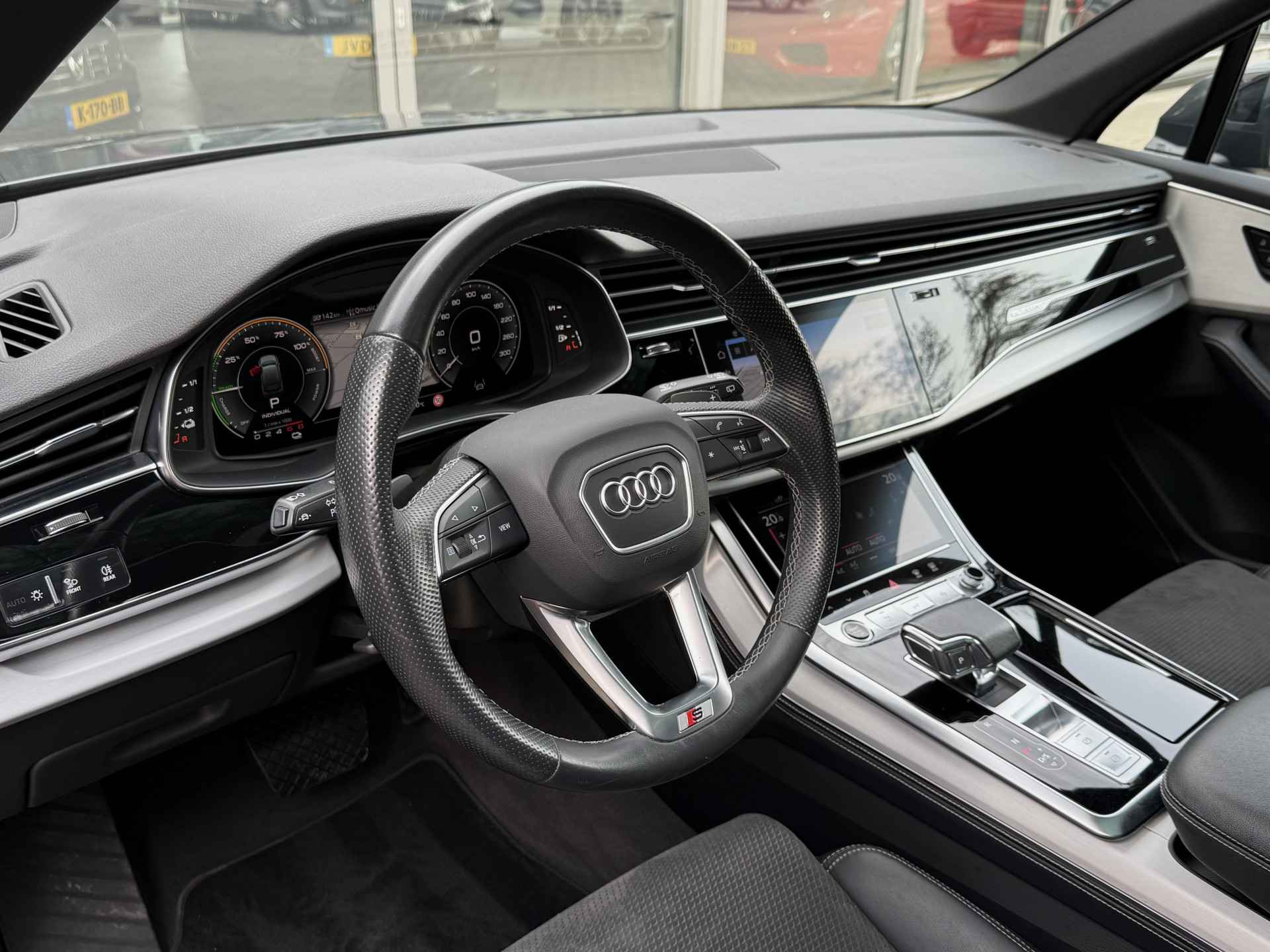 Schitterende, volledig dealer onderhouden audi Q7 55 tfsi-e met af fabriek S-Line pakket en o.a. voorzien: Full map navigatie, carplay, elektrisch bedienbaar panoramadak, comfort stoelen met memory standen en stoelverwarming, stuurwiel verwarming, 22 inch velgen met all season banden, 360 camera, adaptieve cruise control, dode hoek assistent, wegklapbare trekhaak, keyless go en entree, gekeurd alarmsysteem, virtual dashbord, enz.. enz..
