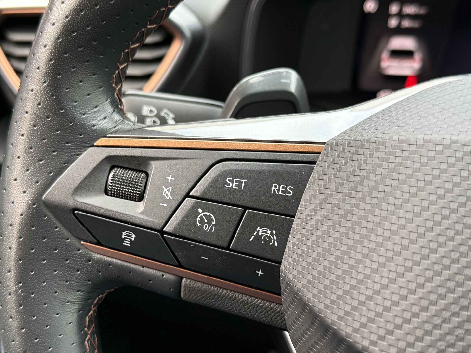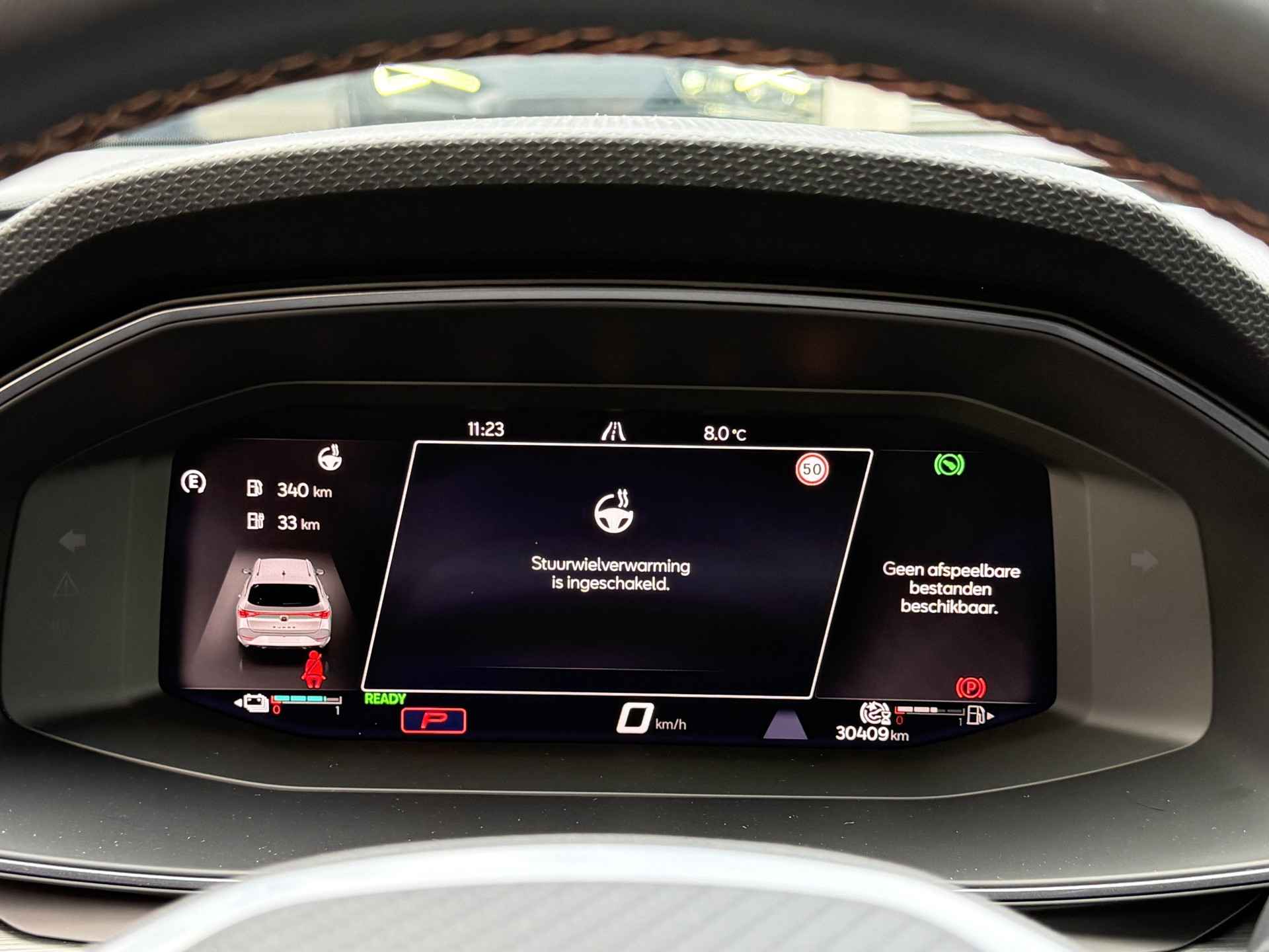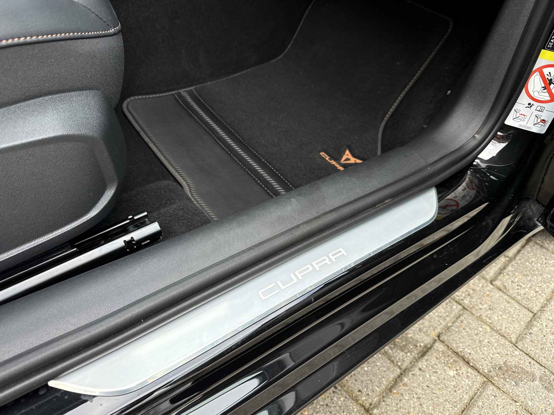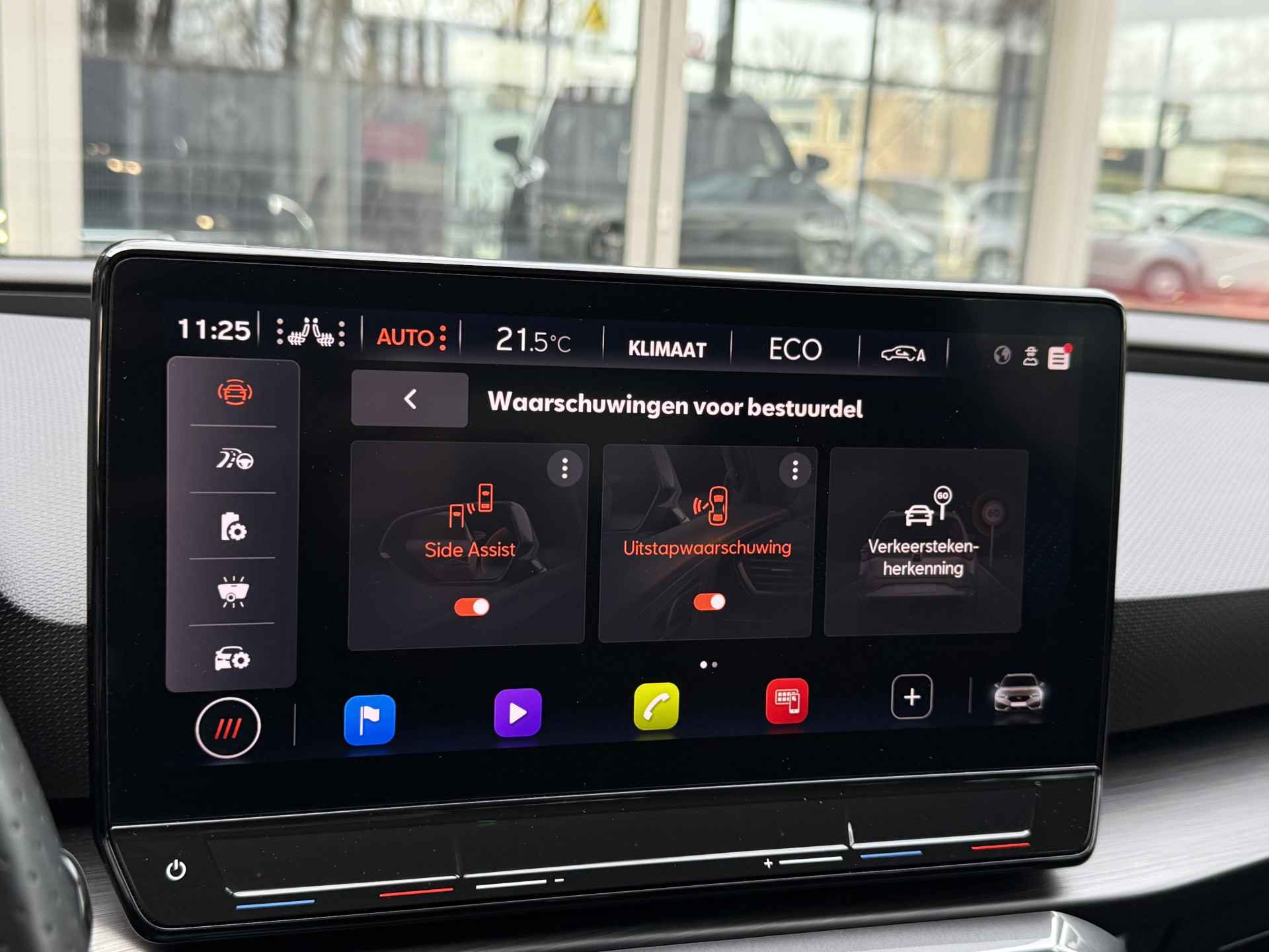 Met de nieuwste technologieën aan boord is deze CUPRA in staat om zelf te reageren op potentieel gevaarlijke situaties op de weg. Onderweg zorgt verkeersborddetectie ervoor dat u geen waarschuwingsbord mist. Het Lane-keeping systeem garandeert dat u zich niet onverhoeds buiten de lijnen van de rijstrook begeeft. Het forward collision warning-systeem is constant alert en detecteert via sensor de afstand tot voorliggers. Wordt die te klein, dan volgt een automatische waarschuwing. U bent mede dankzij dodehoekdetectie, hill hold functie, vermoeidheidsherkenning, autonoom remsysteem en bandenspanningcontrolesysteem steeds veilig onderweg.