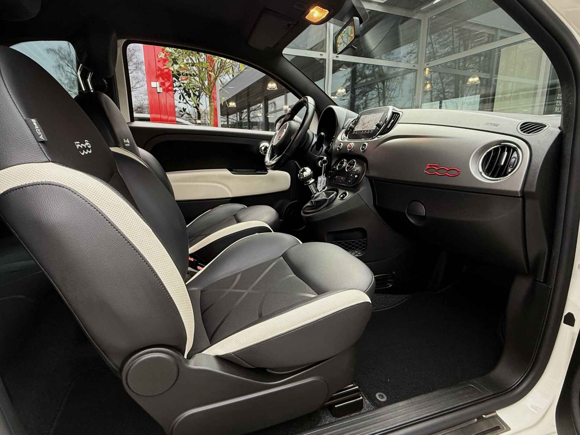 Van uw nieuwe auto verlangt u rijplezier, maar ook optimaal comfort en veiligheid. Daarom is de Fiat 500 de auto die u zoekt. De aandrijving komt voor rekening van een benzinemotor en een handgeschakelde vijfversnellingsbak. Pittig rijden wordt nog comfortabeler dankzij de fraaie sportstoelen. Ook 15 inch lichtmetalen velgen, LED-dagrijverlichting, donker getint glas achter, in delen neerklapbare achterbank en snelheidsafhankelijke stuurbekrachtiging zijn aan boord.