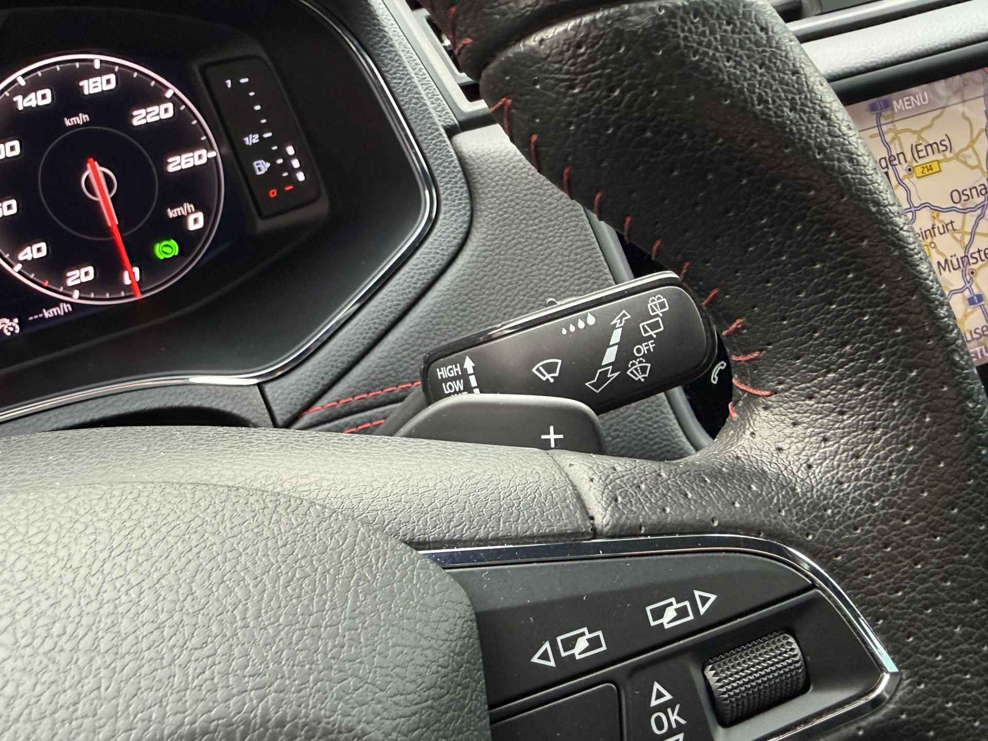 De indeling van het digitale dashboard is zo ingericht dat u met één blik precies weet wat u weten wilt. Een onopvallend paaltje of een overstekend kind achter de auto brengt risico's met zich mee. Gelukkig laat de achteruitrijcamera feilloos zien of alles veilig is. Met adaptive cruise control houdt de auto zelfstandig afstand tot uw voorligger. Een veiligheidsverhogende optie waarmee u comfortabel onderweg bent. Smartphone opladen onderweg? Dat gaat supergemakkelijk door de draadloze oplaadmogelijkheid voor telefoons. De automatische airconditioning zorgt onder alle omstandigheden voor een prettige temperatuur. En deze auto heeft ook dashboard met spraakbediening, full map navigatiesysteem, regensensor, keyless entry, automatisch dimmende binnenspiegel en lederen stuur als standaard uitrusting.