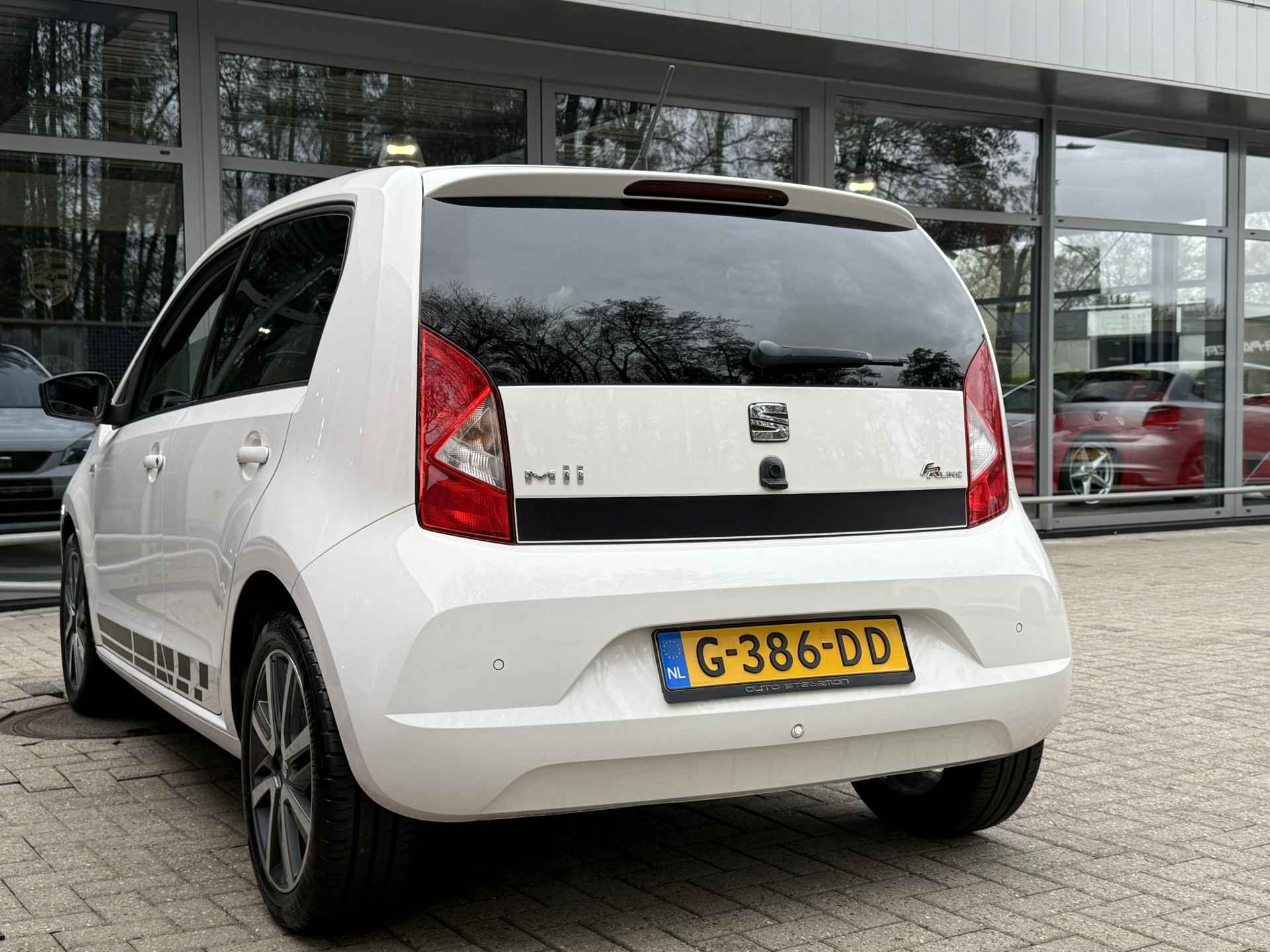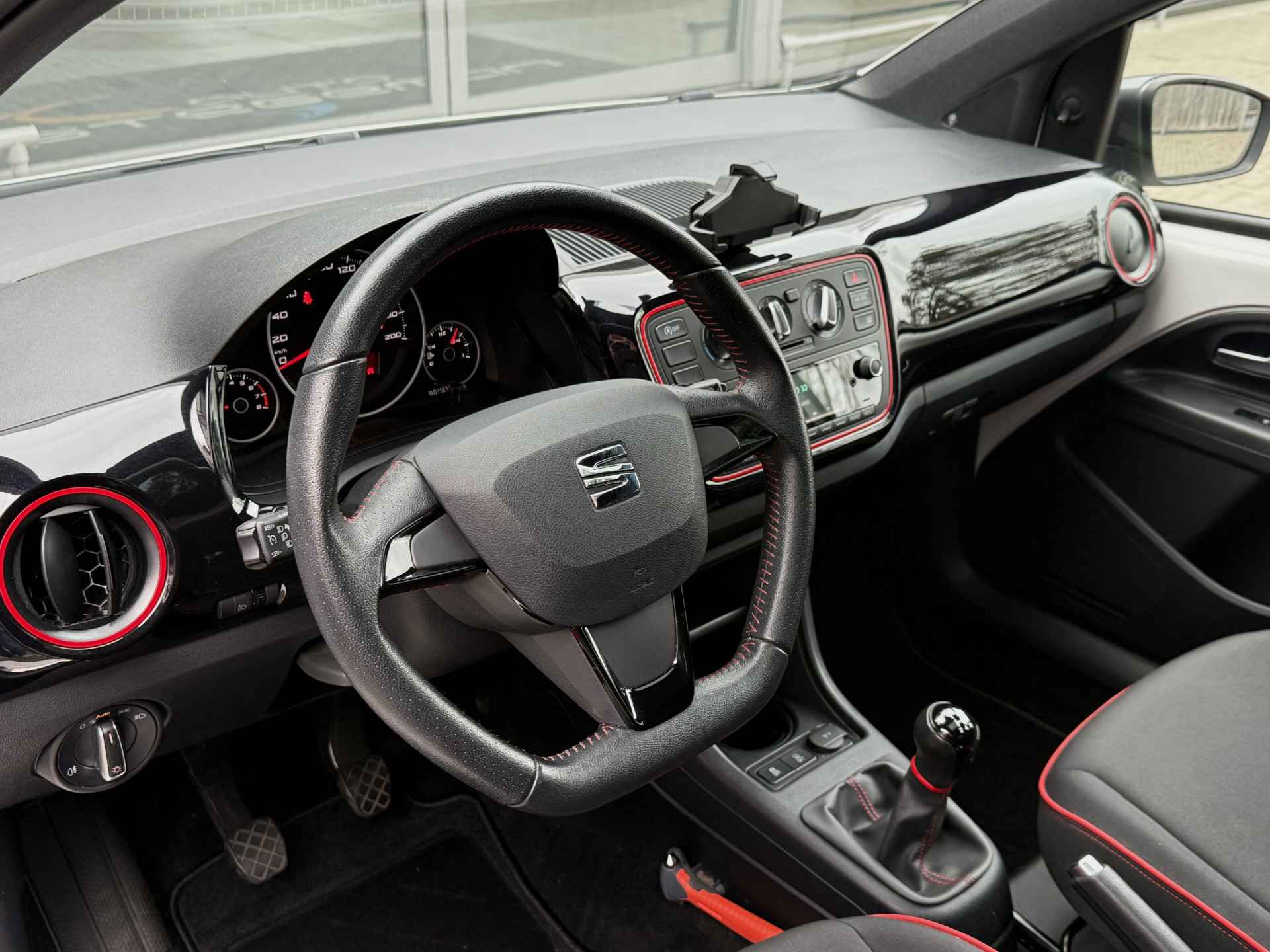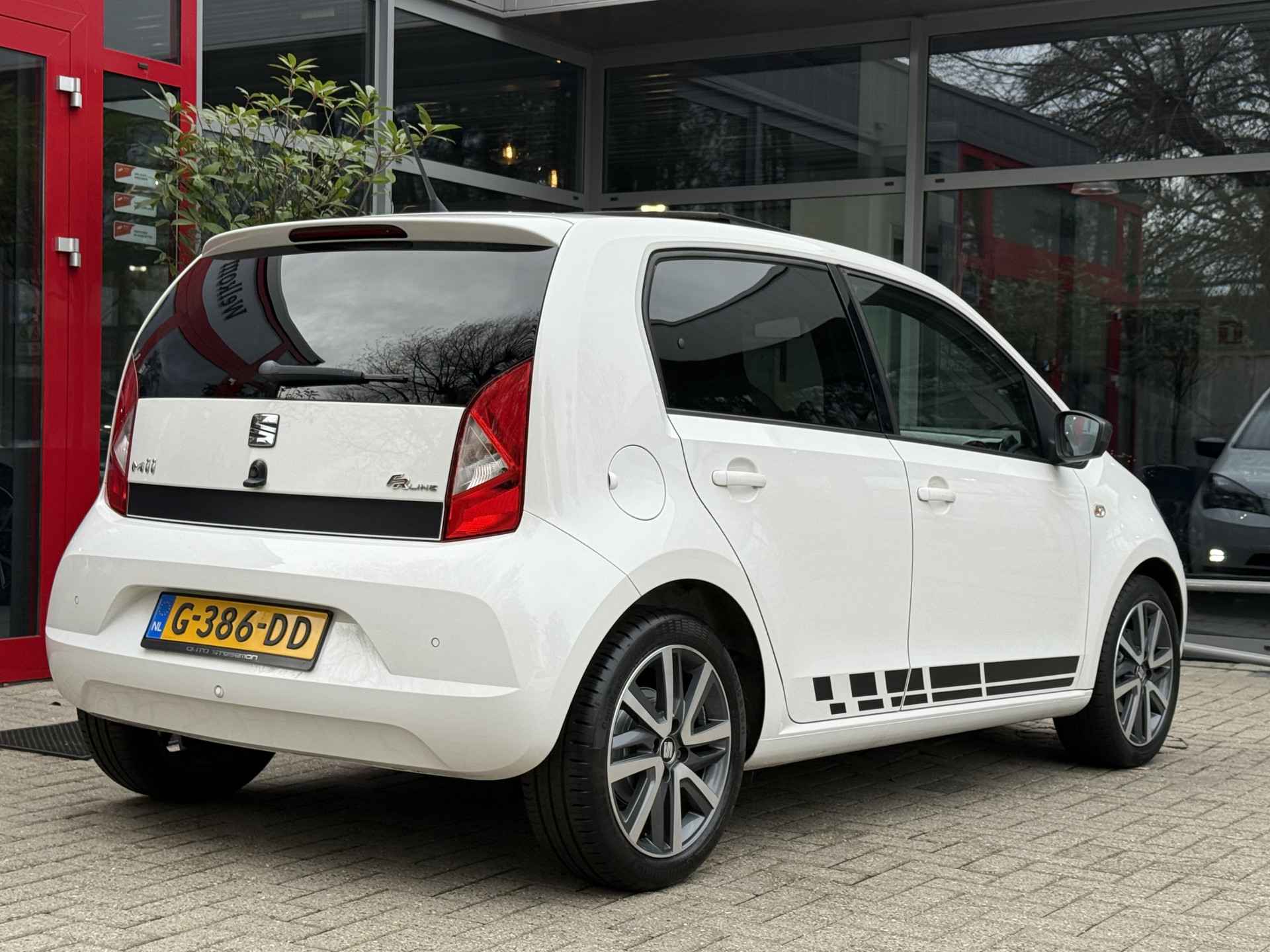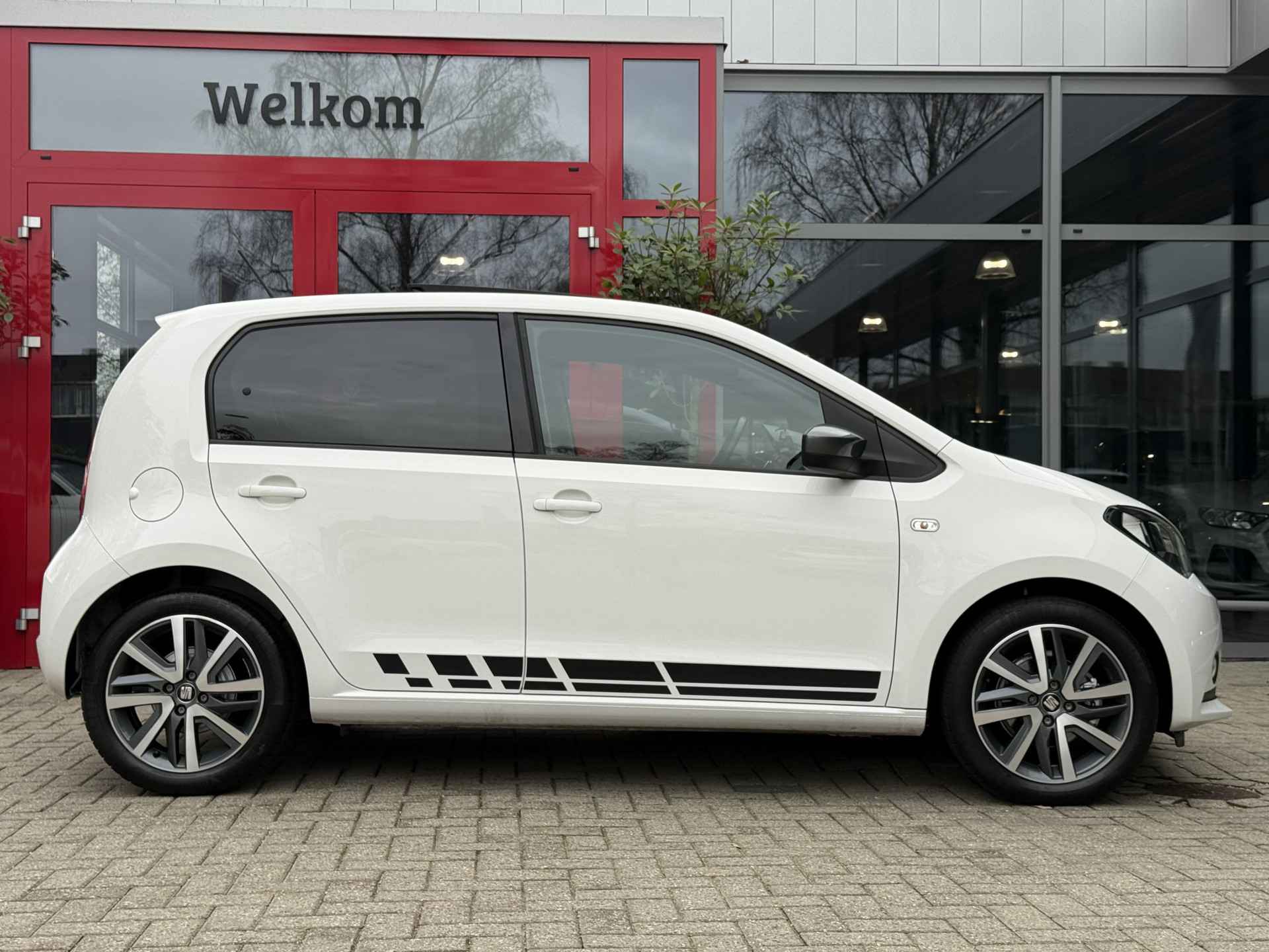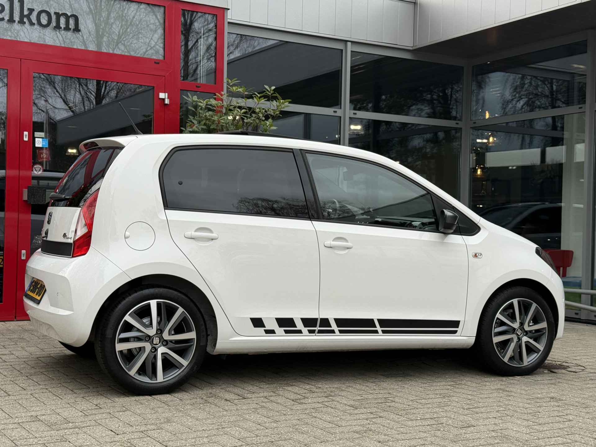 Grachten, singels, steegjes en straatjes: deze SEAT Mii wurmt zich er royaal tussendoor. Voor de aandrijving van deze auto zorgt een pittige benzinemotor in combinatie met een handgeschakelde vijfversnellingsbak. Het interieur glanst in daglicht door het elektrisch bedienbare panoramadak. Tot de voorzieningen van deze auto behoren 16 inch lichtmetalen velgen, LED-dagrijverlichting, in hoogte verstelbare passagiersstoel, donker getint glas achter en in delen neerklapbare achterbank.