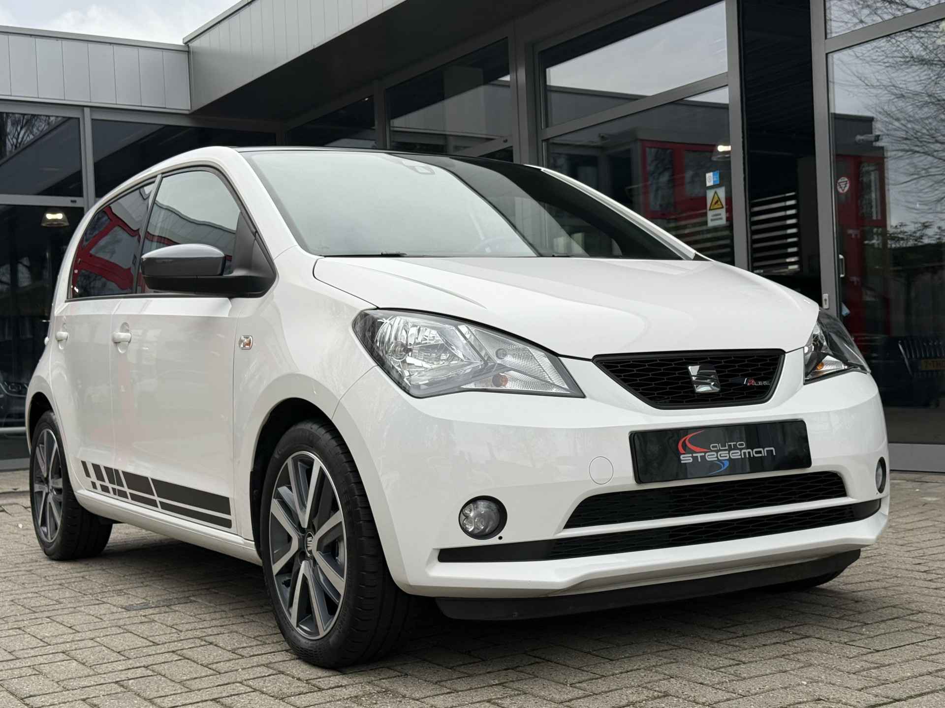 Schitterende Seat mii in de luxe FR uitvoering met o.a. elektrisch bedienbaar panoramadak, cruise control, navigatie/app voorbereiding, parkeersensoren achter, 16 inch velgen, zwarte hemelbekleding, privacy glas achter, airconditioning, enz.. enz...