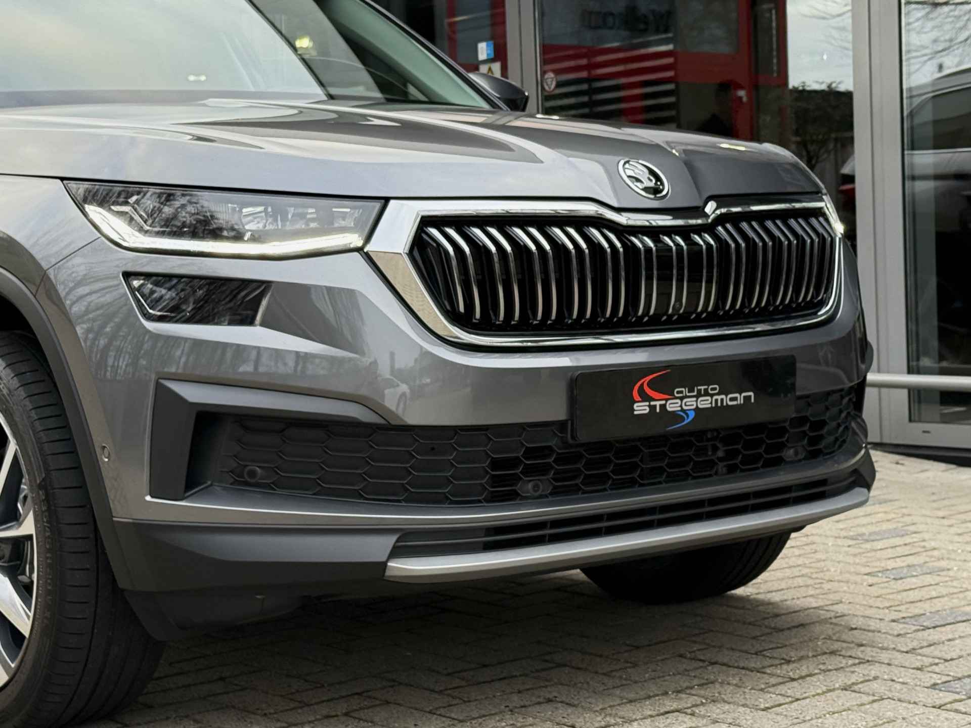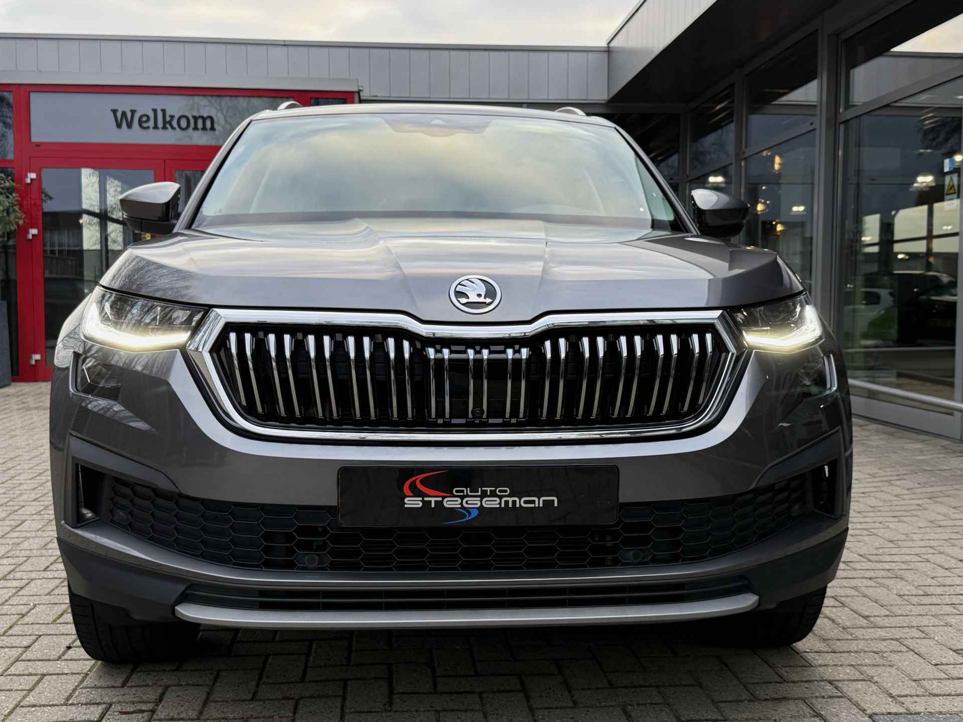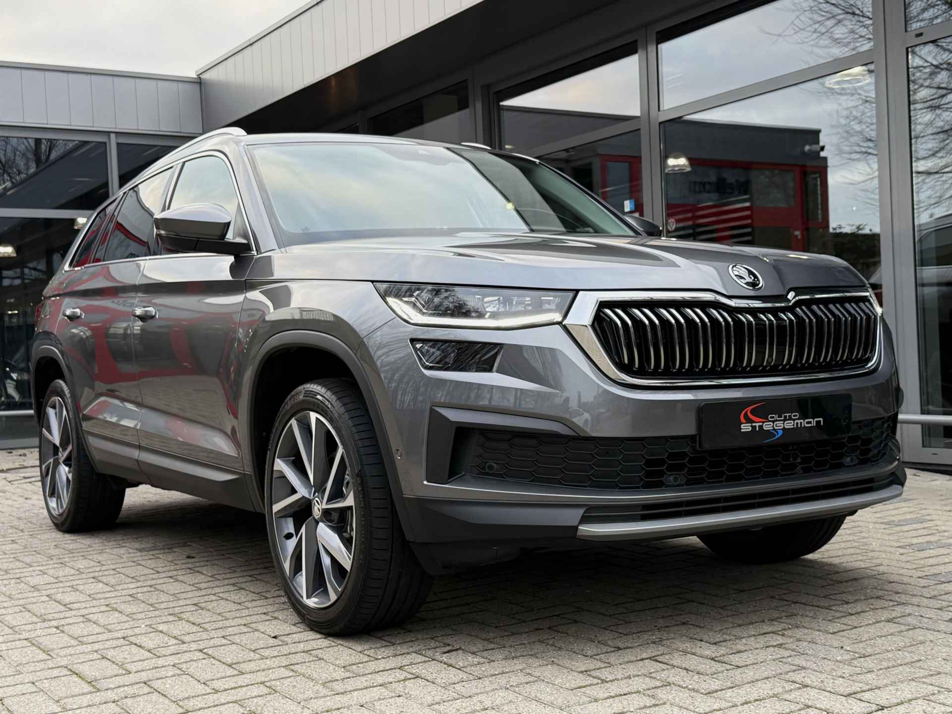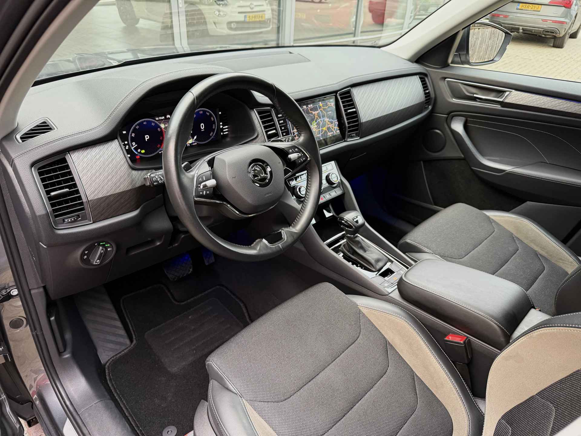 Schitterende Kodiaq 1.5 tsi met o.a. full map navigatie, carplay, 20 inch velgen, cruise control, interieur verlichtingspakket (in kleuren instelbaar), wegklapbare trekhaak, elektrisch verstelbare bestuurderstoelen met memory functie, keyless go, privacy glas, 360 graden camera, stoelverwarming, matrix led verlichting met dynamische knipperlichten, leder/stoffen bekleding, elektrisch bedienbare achterklep, enz.. enz..
