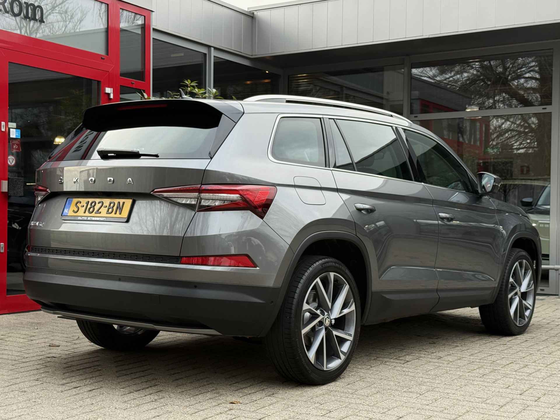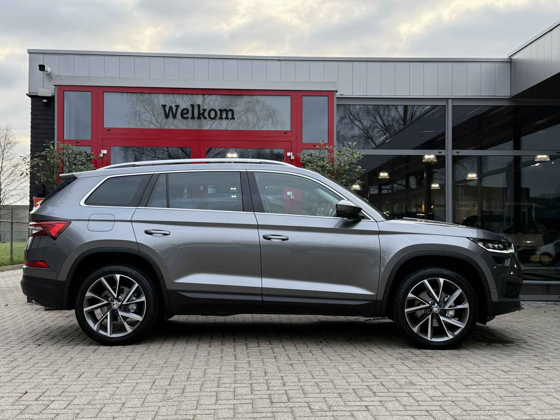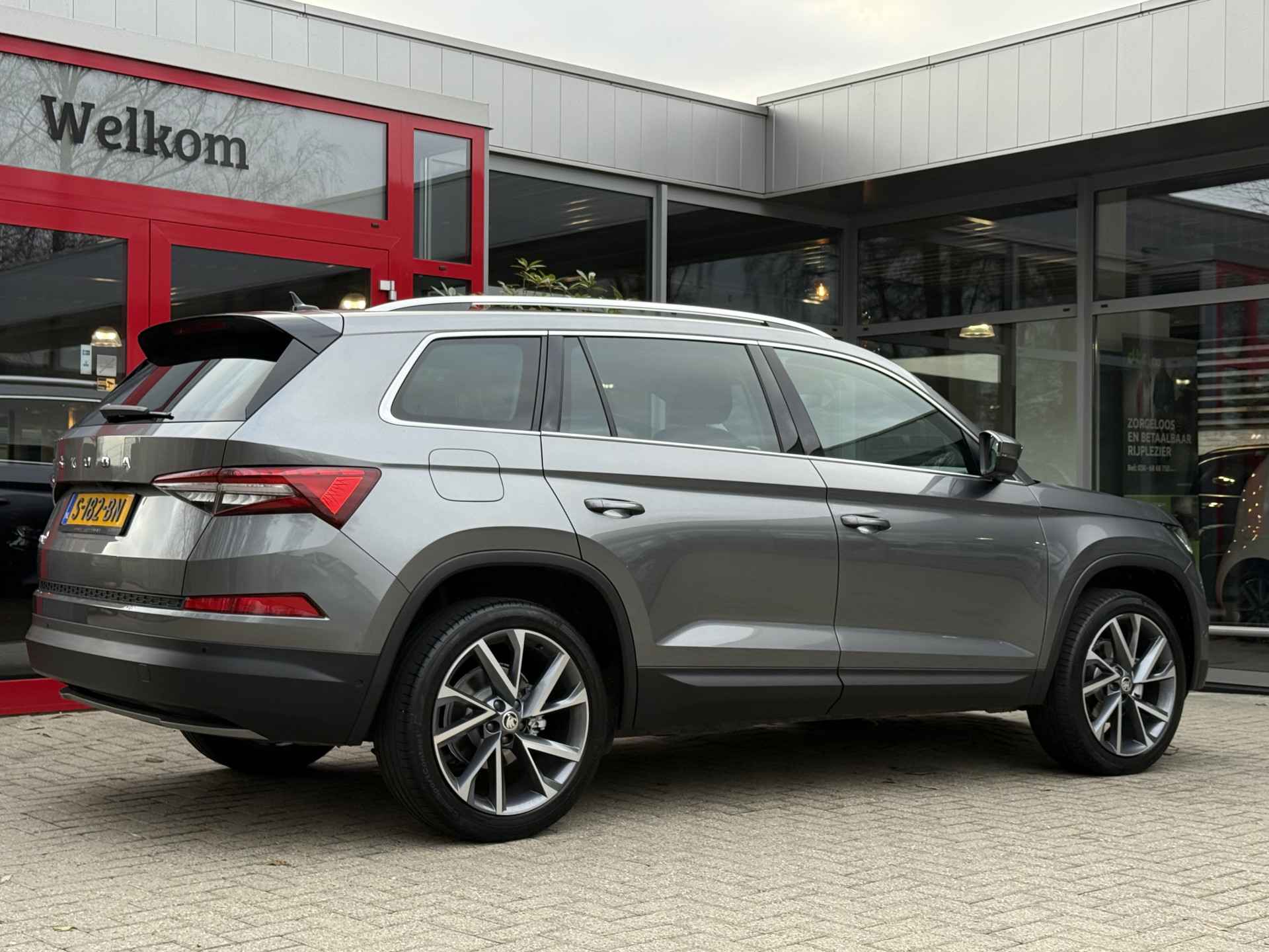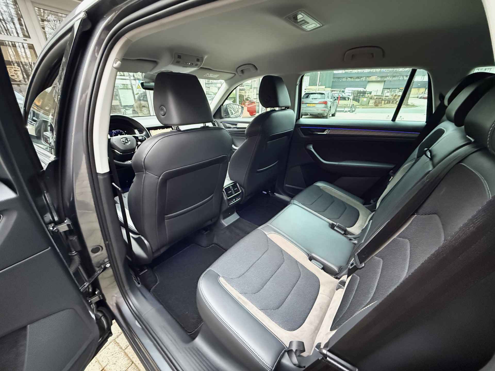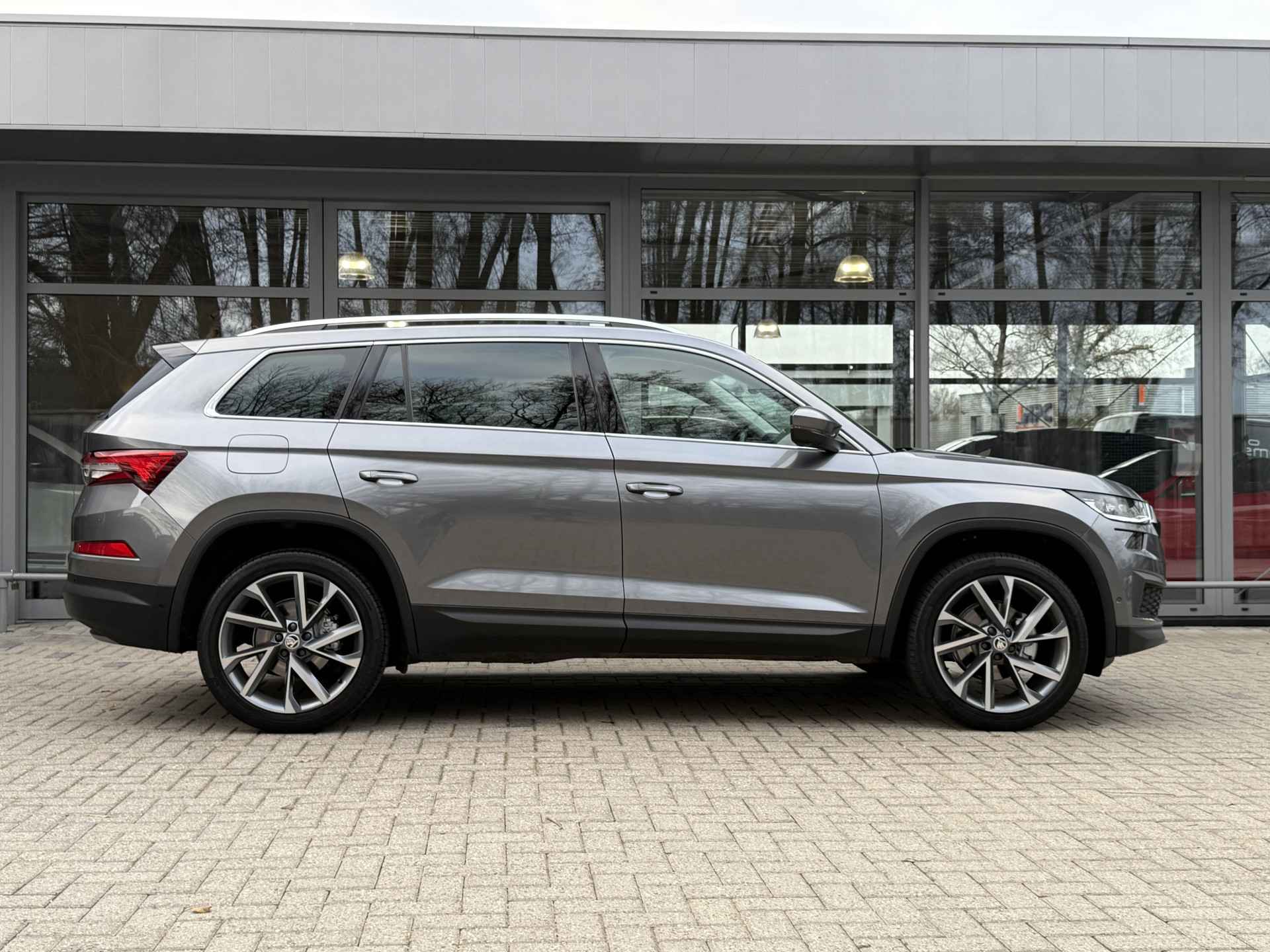 Schitterende Kodiaq 1.5 tsi met o.a. full map navigatie, carplay, 20 inch velgen, cruise control, interieur verlichtingspakket (in kleuren instelbaar), wegklapbare trekhaak, elektrisch verstelbare bestuurderstoelen met memory functie, keyless go, privacy glas, 360 graden camera, stoelverwarming, matrix led verlichting met dynamische knipperlichten, leder/stoffen bekleding, elektrisch bedienbare achterklep, enz.. enz..