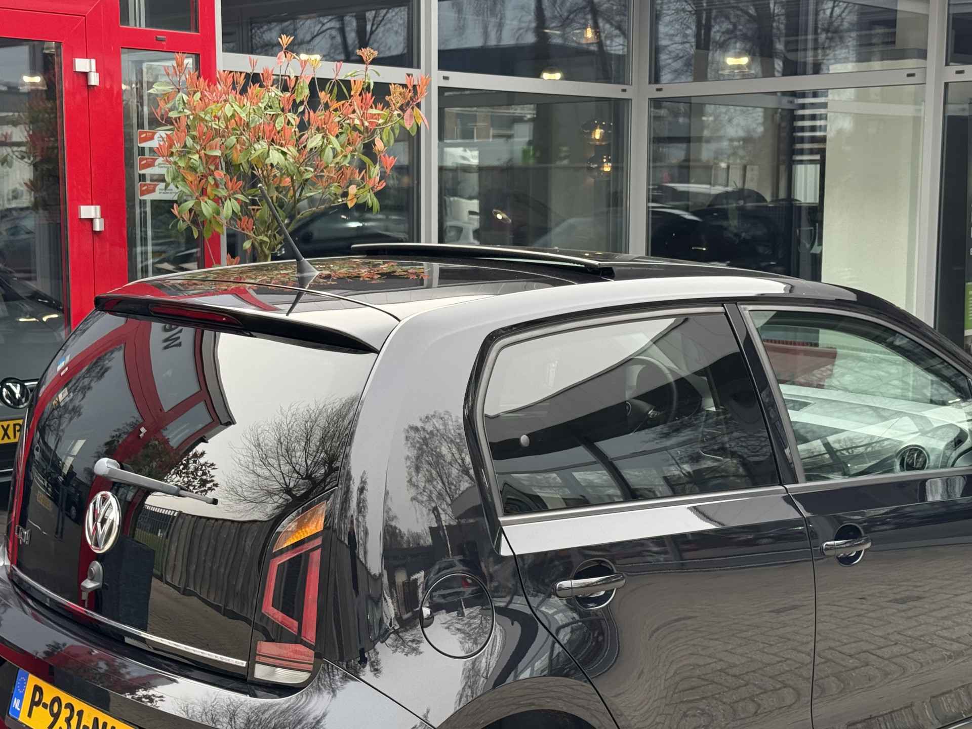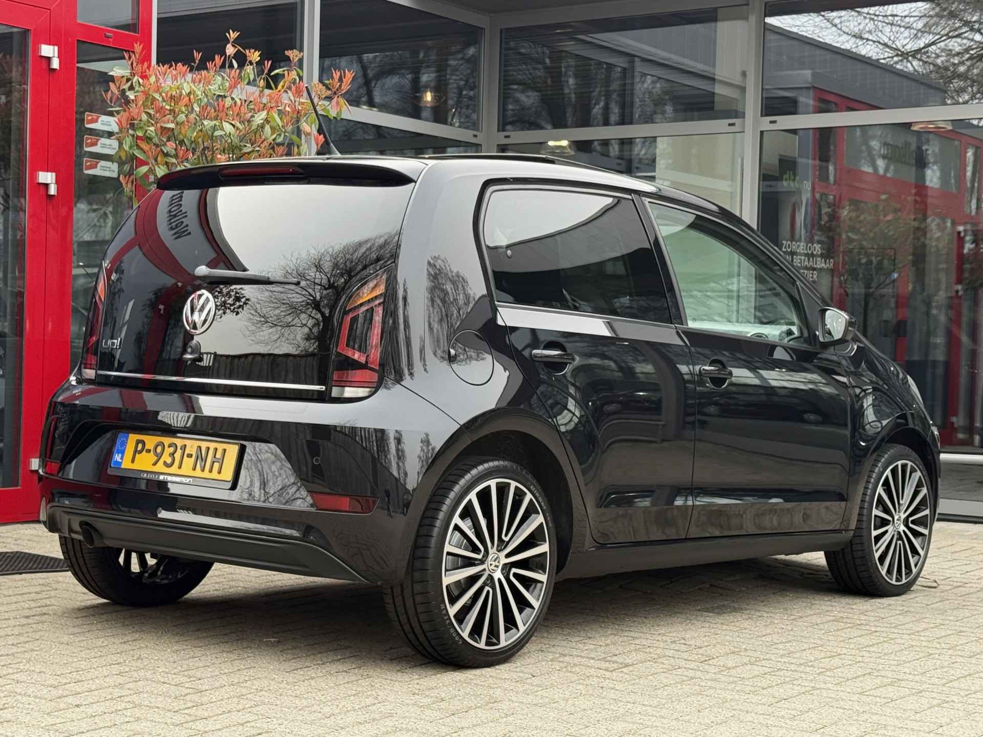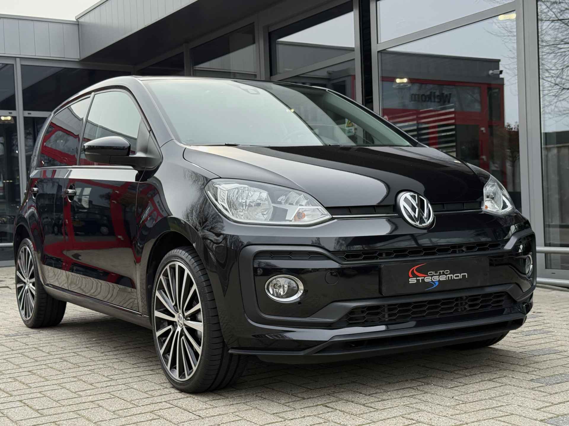 Door de smartphone connectiviteit ontvangt het audiosysteem muziek van elk device. Het audiosysteem doet het op eigen kracht, alle software up-to-date. Deze Volkswagen Up! is voorzien van sensoren aan de achterzijde om een achteropkomend verkeer waarschuwing te geven als de afstand tussen u en een achterligger te klein is. De automatische airconditioning zorgt voor een prettige binnentemperatuur. Boem is ho? Niet bij deze Volkswagen Up!. De piepjes van de parkeersensoren waarschuwen u op tijd voor obstakels. Natuurlijk is een complete auto als deze ook voorzien van sensoren die de omgeving in de gaten houden. Deze Volkswagen heeft niet alleen een automatisch inschakelbare verlichting aan boord, maar ook een regensensor. Wat u ook in deze auto kunt vinden zijn cruise control, lederen stuur, centrale deurvergrendeling met afstandsbediening, boordcomputer en lederen versnellingspook.