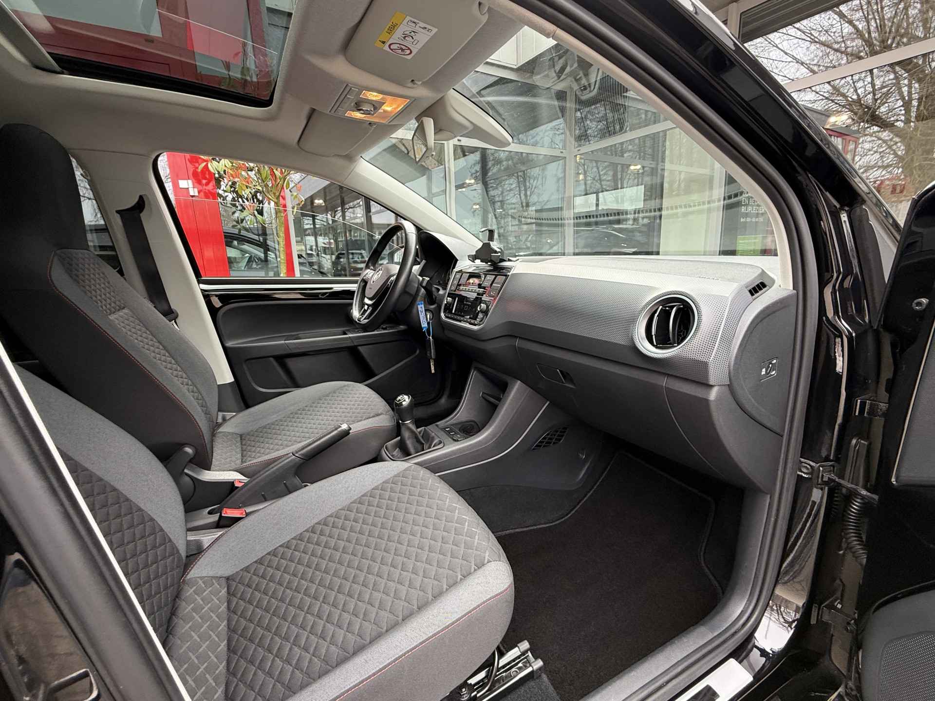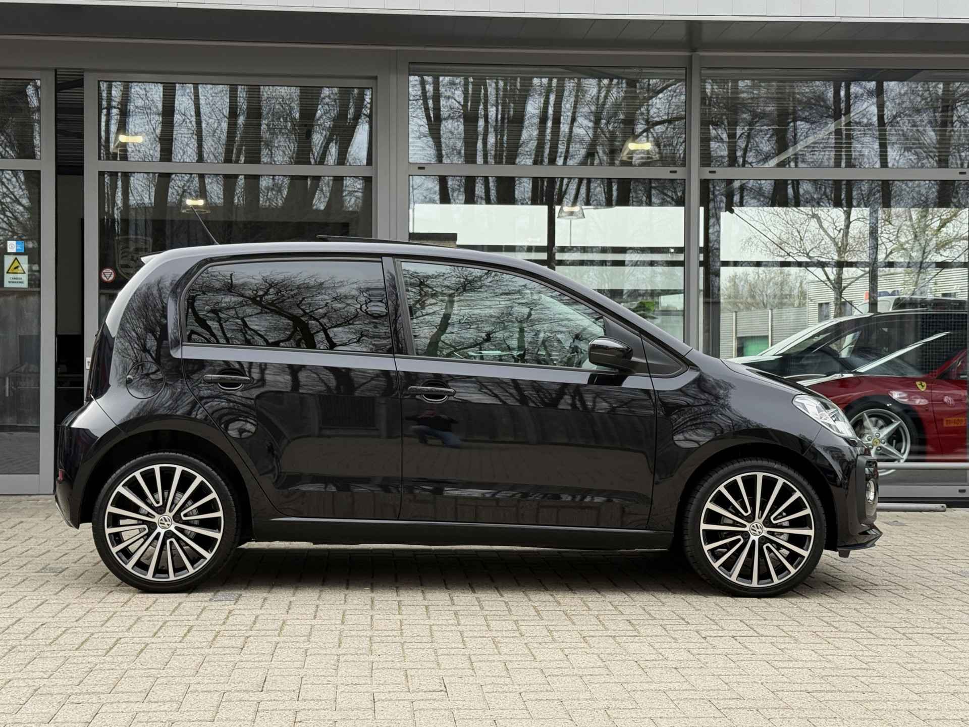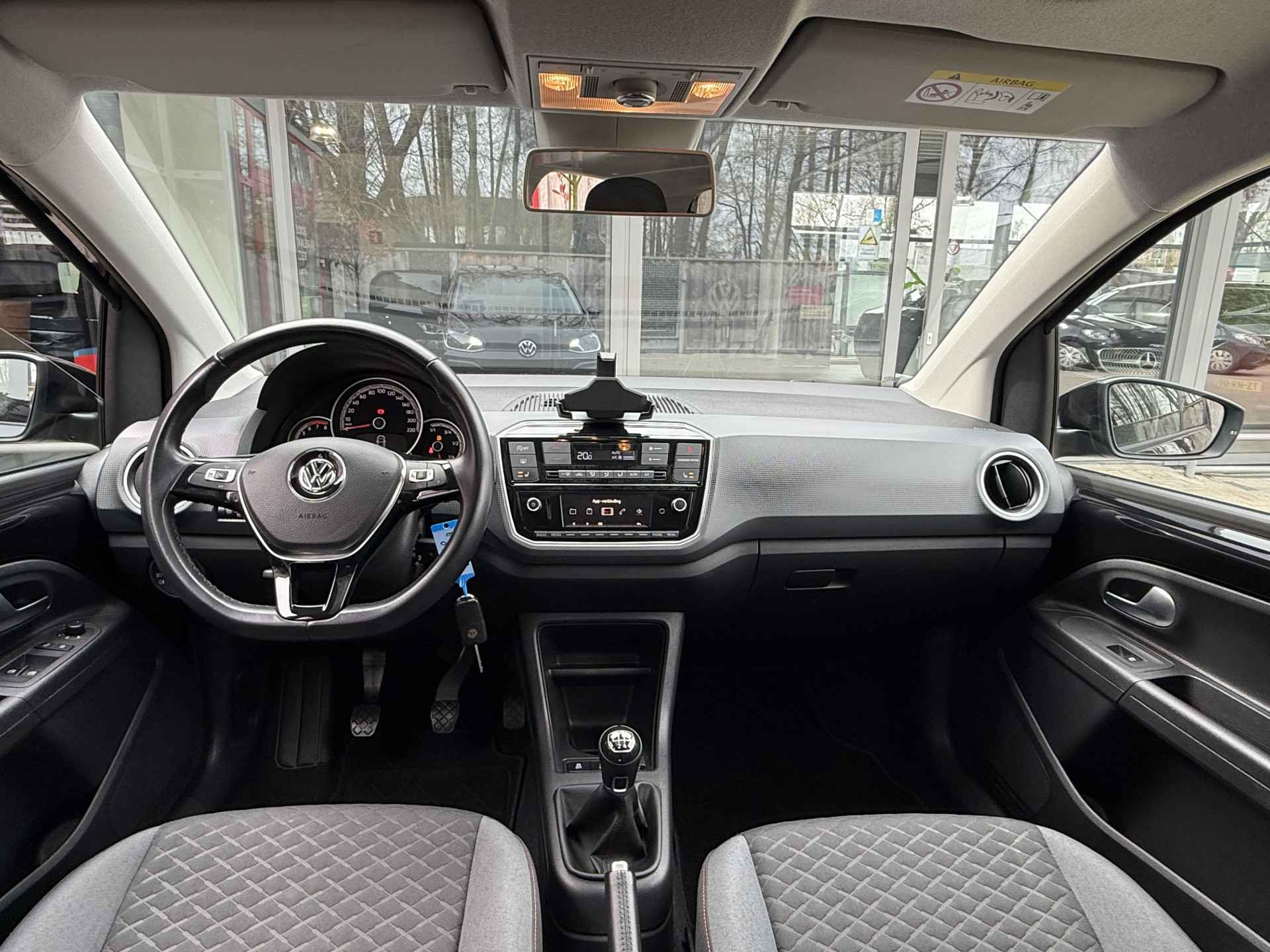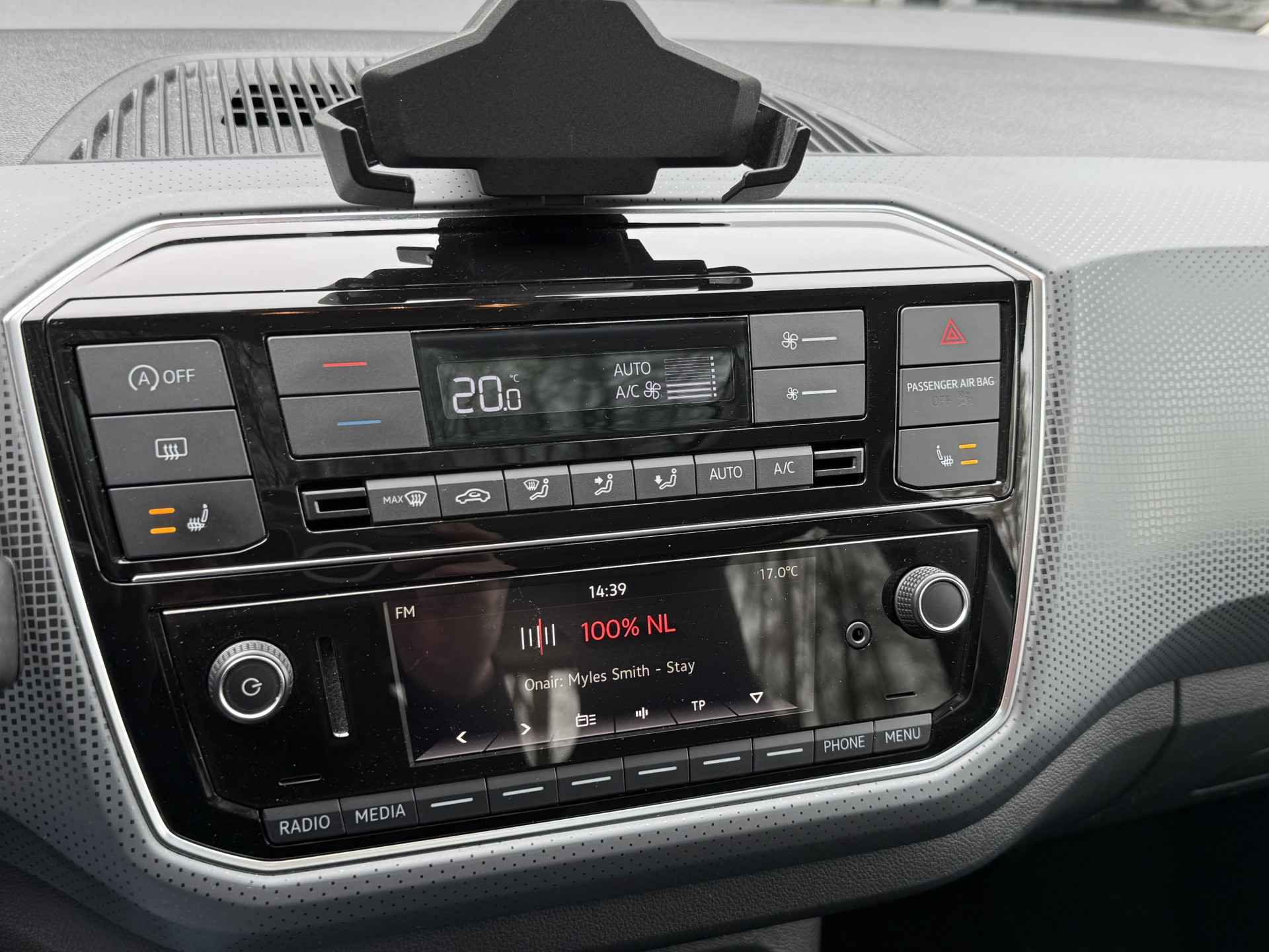 Door de smartphone connectiviteit ontvangt het audiosysteem muziek van elk device. Het audiosysteem doet het op eigen kracht, alle software up-to-date. Deze Volkswagen Up! is voorzien van sensoren aan de achterzijde om een achteropkomend verkeer waarschuwing te geven als de afstand tussen u en een achterligger te klein is. De automatische airconditioning zorgt voor een prettige binnentemperatuur. Boem is ho? Niet bij deze Volkswagen Up!. De piepjes van de parkeersensoren waarschuwen u op tijd voor obstakels. Natuurlijk is een complete auto als deze ook voorzien van sensoren die de omgeving in de gaten houden. Deze Volkswagen heeft niet alleen een automatisch inschakelbare verlichting aan boord, maar ook een regensensor. Wat u ook in deze auto kunt vinden zijn cruise control, lederen stuur, centrale deurvergrendeling met afstandsbediening, boordcomputer en lederen versnellingspook.